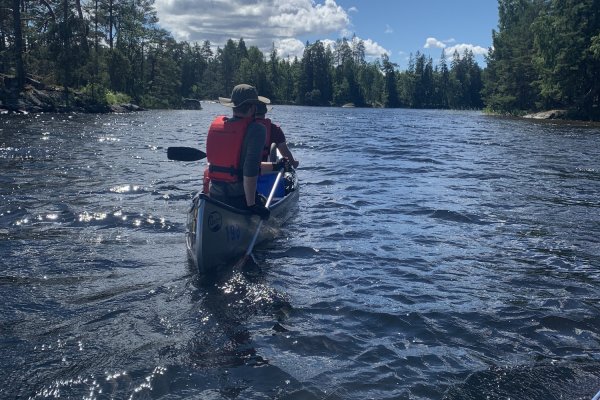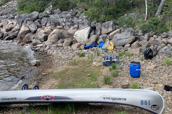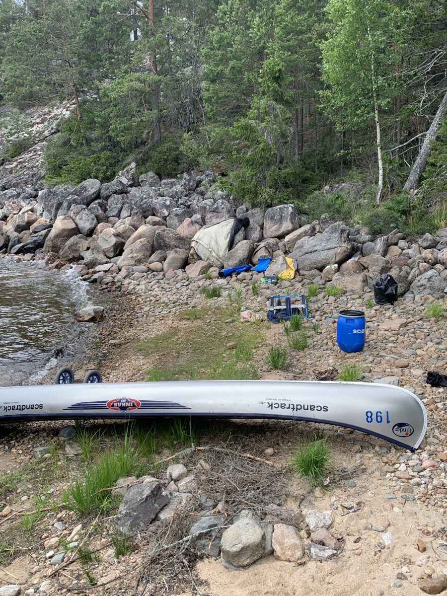 An Tag 5 unserer Reise welchen wir Motiviert und in trockenen Klamotten begonnen haben stand die erste Umtragestelle auf dem Programm. Dort begegneten wir zwei weiteren Abenteurern welche bereits von den legendären "Kenterern" gehört hatten. Dank unserer Kanuwagen konnten wir die Umtragestelle bald hinter uns lassen und in einem ruhigeren Teil des Sees unseren bisher erfolgreichsten Paddeltag genießen. Dank des Windes welcher uns auch an diesem Tag begleitete wurde auch an diesem Abend das Lager Aufbauen zu einer Herausforderung. Nach den Erlebnissen der letzten Tage konnte dies jedoch unsere Stimmung nicht trüben.
