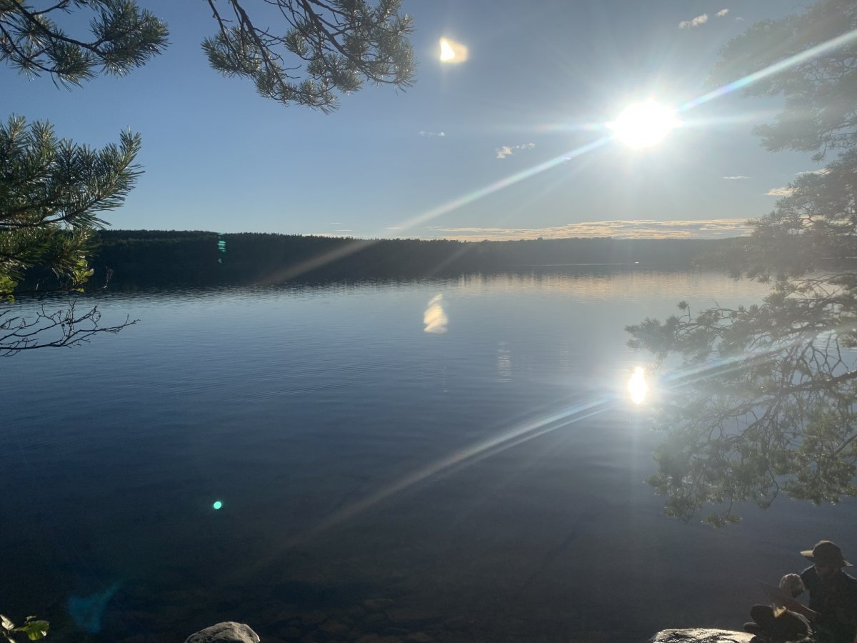 Wie euch der Kreative Titel dieses Tages wahrscheinlich vermuten lässt, haben wir an Tag 7 unseres Abenteuers die bisher größte Strecke zurückgelegt. Insgesamt sind wir 18 Kilometer gepaddelt, und da wir nun wieder auf den großen Haupt See hinauskommen, wo der Wind in den letzten zwei Tagen gedreht hat, müssen wir auch an diesem Tag ein gutes Stück der Strecke gegen den Wind anpaddeln. Dafür belohnt Schweden unsere Anstrengungen mit einem absolut Atemberaubenden Sonnenuntergang und einem Spiegel glatten See. Getragen von diesen Eindrücken schlagen wir an diesem Abend unser Lager erst spät in der Nacht auf. auch wenn uns langsam aber stetig bewusst wird das dieses Abenteuer sich bereits dem Ende neigt.