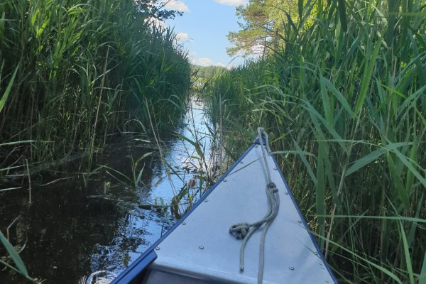 Der 3 Tag beginnt mit einem unfassbar schönen morgen, einem leckeren Kaffee und der Wetter App, die uns verrät, dass Machmittags ein Gewitter genau über uns hinweg ziehen soll. Unser Plan war es also so schnell wie möglich raus aufs Wasser, am Rand des Sees nach Norden zur schmalsten Stelle und dann den See einmal von links nach rechts zu überqueren. Kurz vor der Überquerung noch einmal Kraft getankt und den Wetterbericht gecheckt, wir hatten noch genug Zeit bis das Gewitter kommen sollte. Es kam schneller als erwartet. bereits nach den ersten paar hundert Metern begann der Wind, die Wellen wurden größer und unsere beiden Kanus wurden auseinandergetrieben. Zurück war keine Option mehr, da die Wellen uns von schräg hinten immer weiter auf den See hinaus trieben. Trotz des Wetters waren wir weiterhin guter Dinge es bis zur anderen Seite zu schaffen. In der Mitte des Sees befindet sich eine kleine Vogelschutzinsel welche uns als Orientierung diente, und welche wir von unten Umfahren wollten. Die Wellen trieben jedoch eines unserer Kanus vor dieser Insel entlang. So kam es das dieses Kanu hinter der Insel genau Seitlich zu den Wellen Stand und nach einer besonders großen Welle tatsächlich kenterte.