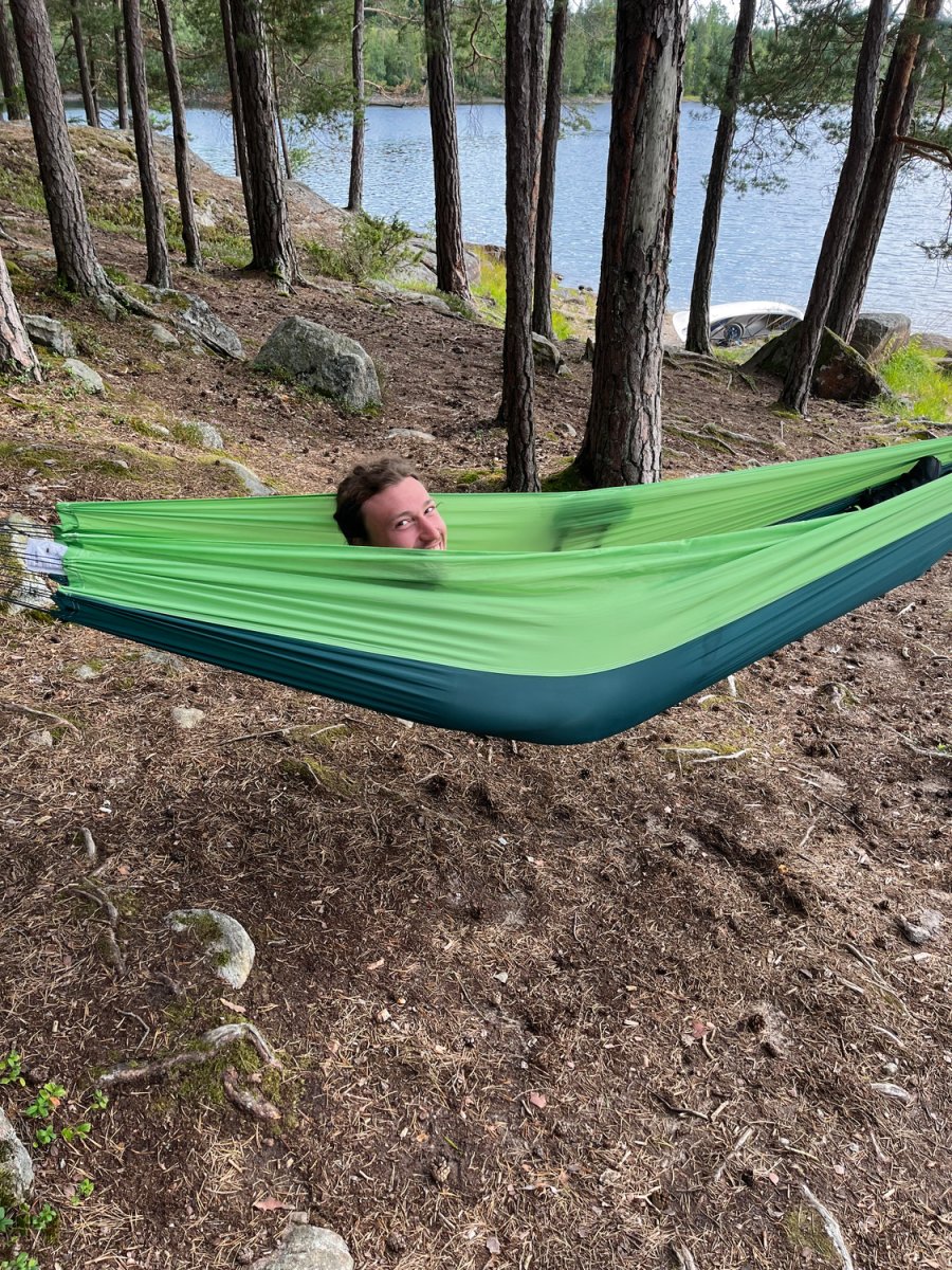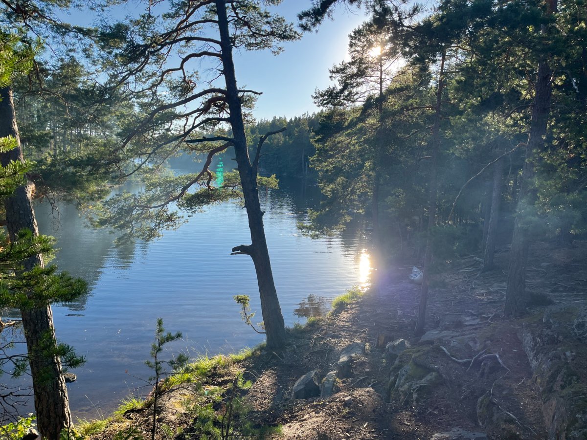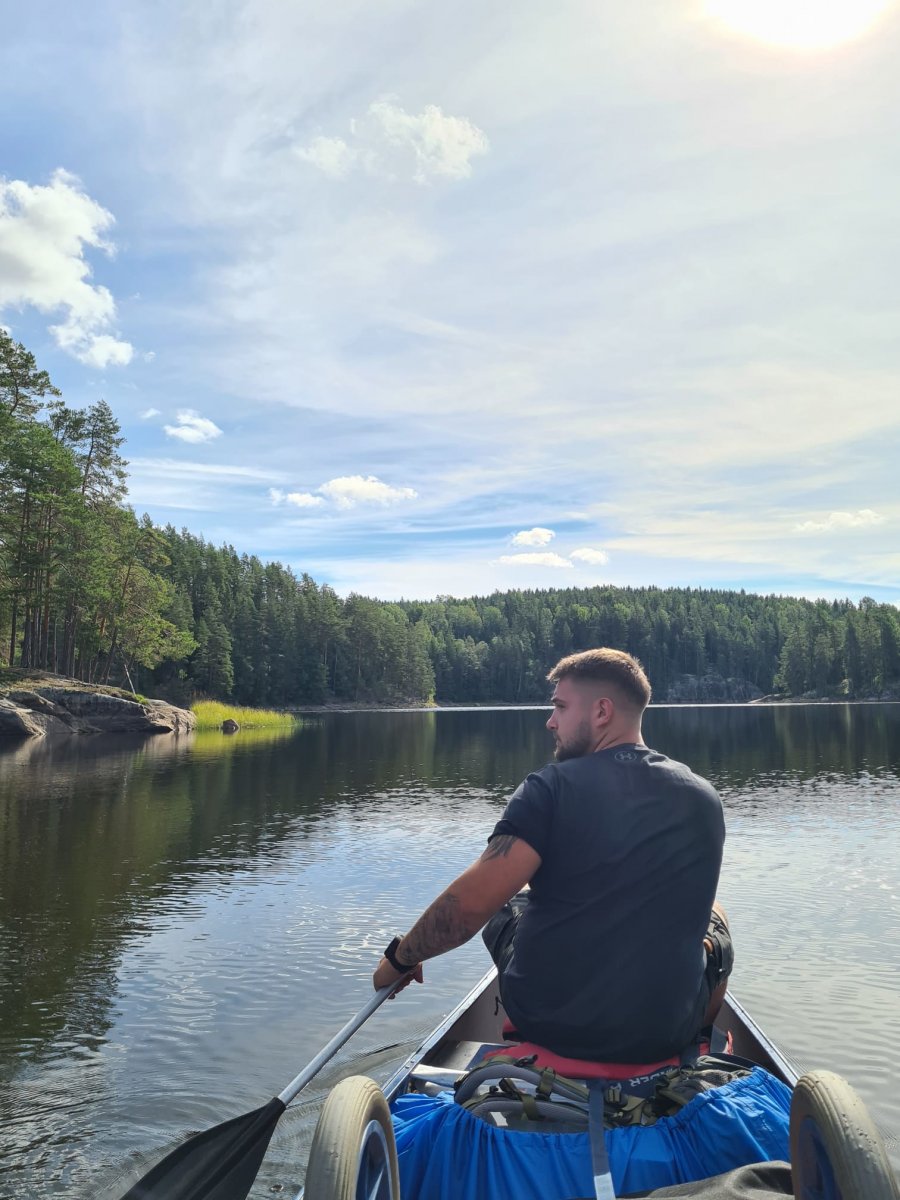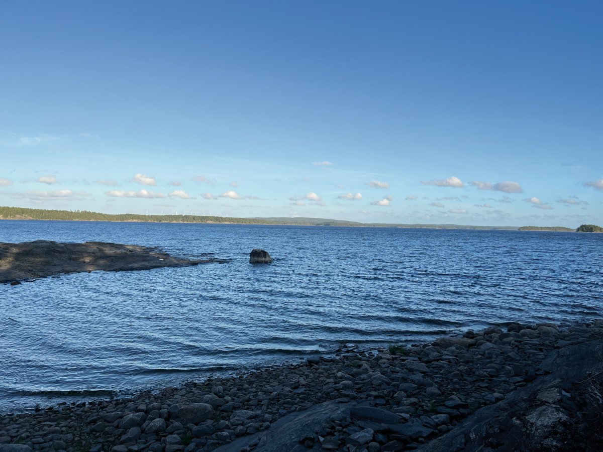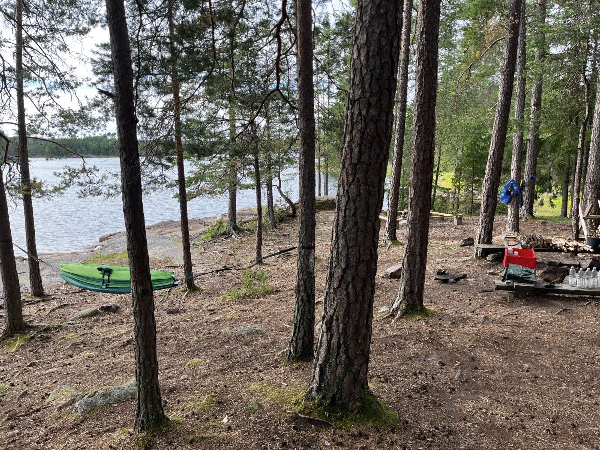 Die Ausbeute war beachtlich und die Vorfreude auf ein leckeres Abendessen daher umso größer. Nach der Sammelaktion begaben wir uns also wieder ins Kanu und fuhren das erste Dano der Insel Bärön an. Kurz vor dem erreichen des Ziels fiel dem Kapitän der Nussschale auf, dass wichtiges Gut (manche nennen es auch Gemüse), auf der Landzunge zurückgelassen wurde. Es dauerte keine Sekunde dass feststand, es wird umgekehrt! Denn nichts und niemand wird auf dem wilden Abenteuer zurückgelassen. Leider stellte sich zu diesem Zeitpunkt heraus, dass Neptun nicht sonderlich positiv auf das Chaos Duo gestimmt war. Auf dem Rückweg zur Landzunge, trieb die Nussschale also von links nach rechts und schwankte in alle Richtungen. Nach unzähligen Kilometern beratschlagten wir uns also, da uns der Rückweg deutlich länger vorkam, als der Hinweg. Und so kam die Erleuchtung. Neptun trieb das Duo 6 Kilometer zu weit gen Norden. Ab diesem Zeitpunkt hieß es Zähne zusammenbeißen und zurück zur Landzunge zu paddeln. Nach 30 Kilometern paddeln erreichten wir die Landzunge, fanden das verlorene Gemüse und blieben schließlich für die erste Nacht auf der Landzunge. Somit war die Pfanne aus Bratkartoffeln, Zwiebeln und selbst gesammelten Pilzen auch wohl verdient. So neigte sich unser erstes Erlebnis dem Ende.