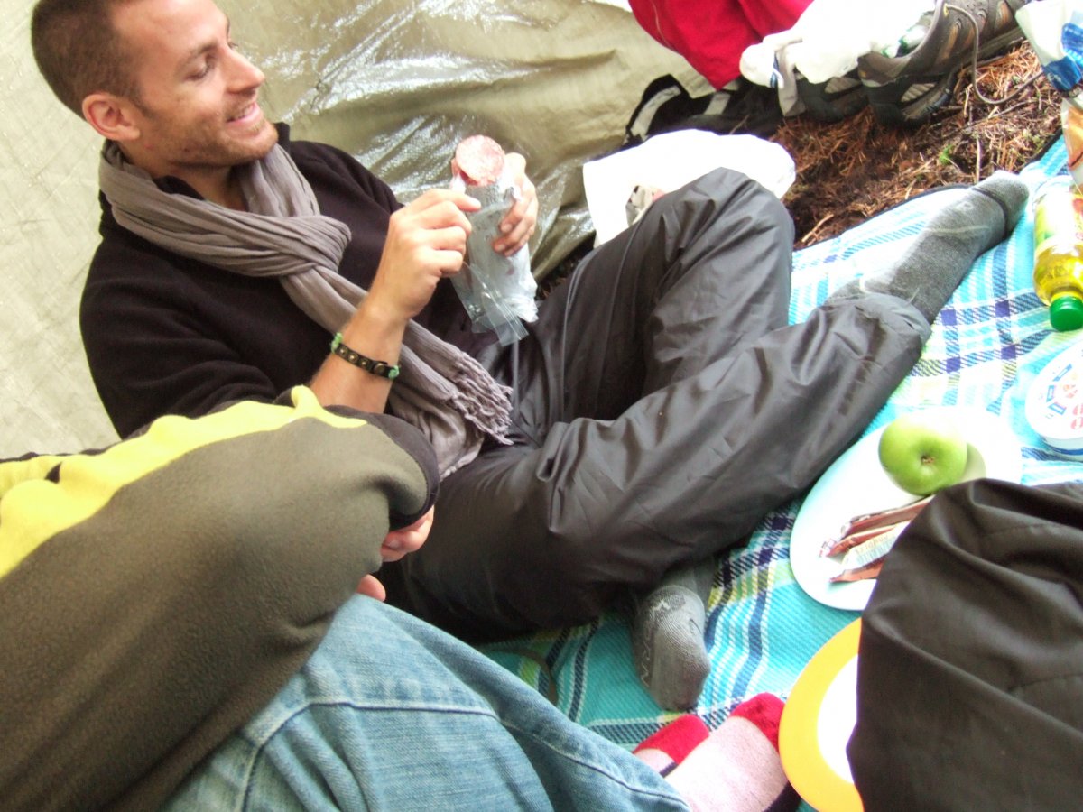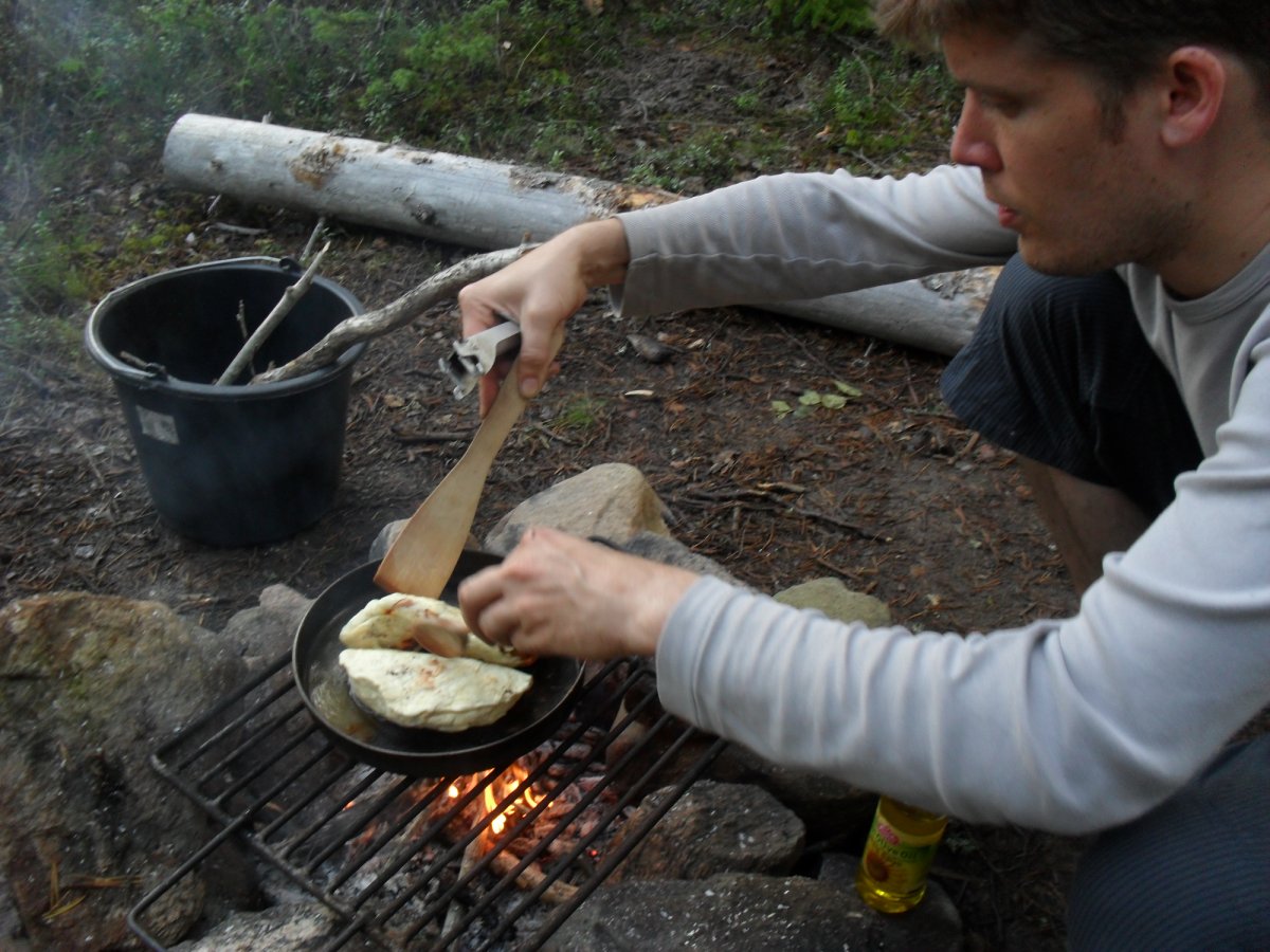 Als wir am dritten Tag aufwachen, sind die Wellen immer noch so hoch wie am Vortag. Für schlechte Stimmung ist aber nicht lange Zeit, denn wir bekommen auf „unserer“ Halbinsel Besuch: Verena und Thomas machen bei uns Halt. Wir lernen einander kennen, führen interessante Gespräche und sie erklären uns nicht nur, wie man ein Feuer macht (unsere zweite Lektion), sondern auch, wie man darüber Calzone backt!