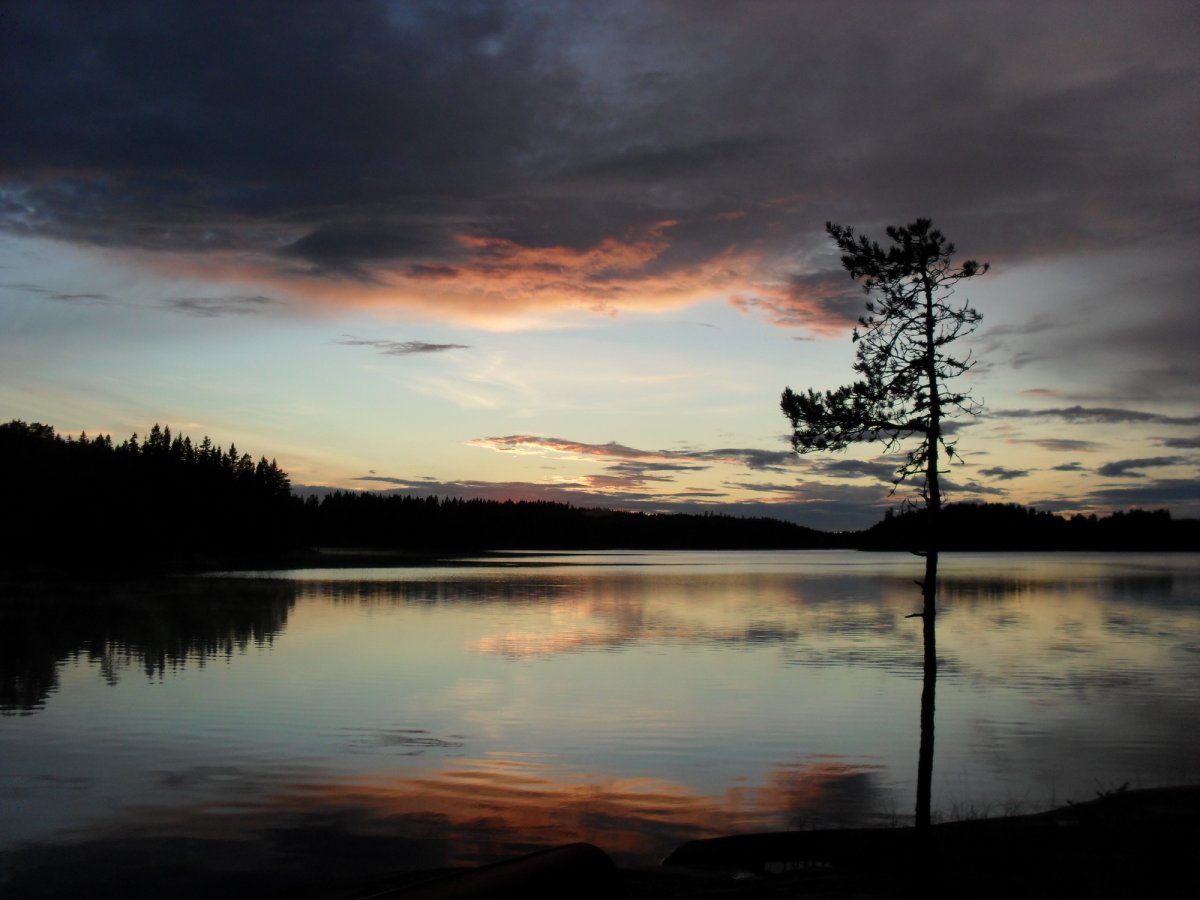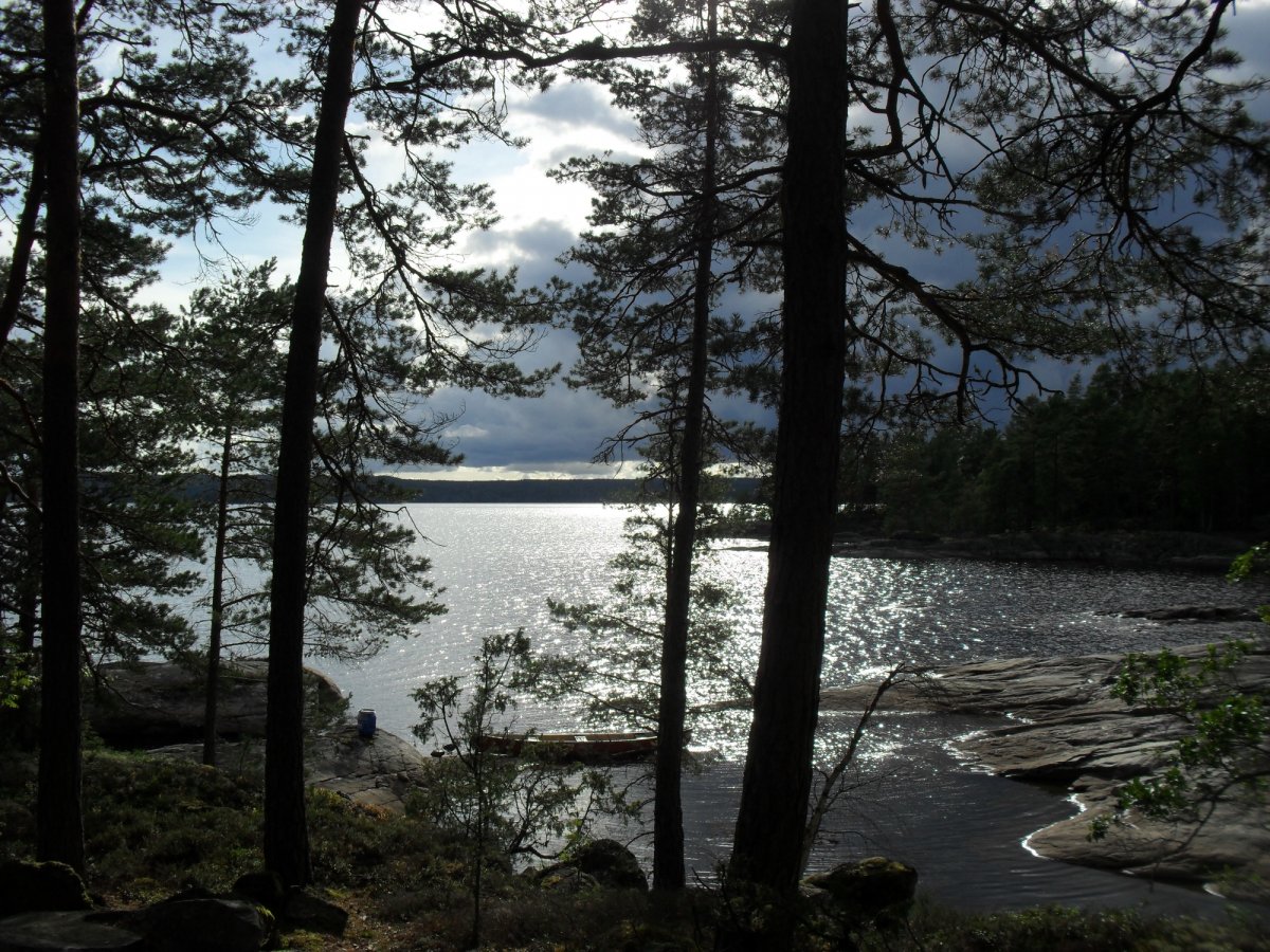 Heute soll es wieder weiter gehen, wir wollen richtig viel paddeln. Gut, dass wir uns schon beim Frühstück unsere Brote geschmiert und auch den Rest des Pilzrisottos eingepackt haben. Mmh, wir genießen unsere Mittagspause in der Natur! Am frühen Nachmittag treffen wir zwei Schweden, die sich gerade daran machen, „ihre“ Insel zu verlassen. Wir dürfen ihren idyllischen Lagerplatz übernehmen und bekommen sogar eine Landkarte geschenkt!