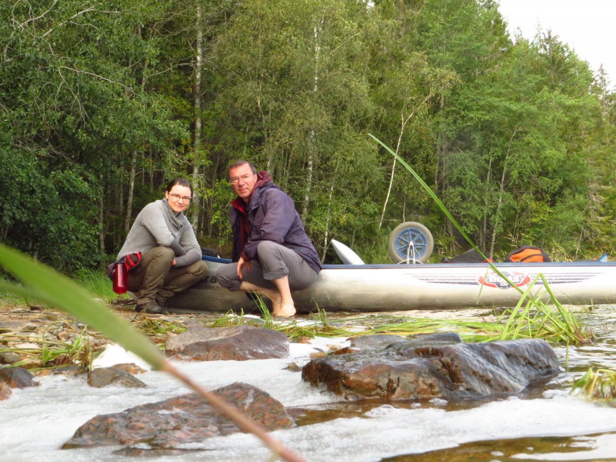 Eine Sache, um die man wohl bei keiner längeren Kanu Tour herumkommt, sind Umtragungen des Kanus über Land von einem See zum Nächsten. Ich hatte aus den Erzählungen meines Vaters von abenteuerlichen Umtragungen mitten durch den Wald gehört und so war ich für alles bereit. Abenteuerlich waren unsere Kanu-Umtragungen auf dieser Tour auch. Allerdings nicht durch den Wald, sondern über die Landstraße. Ob die schwedischen Autofahrer es wohl gewohnt sind, dass ihnen ab und an ein Kanu entgegenkommt?