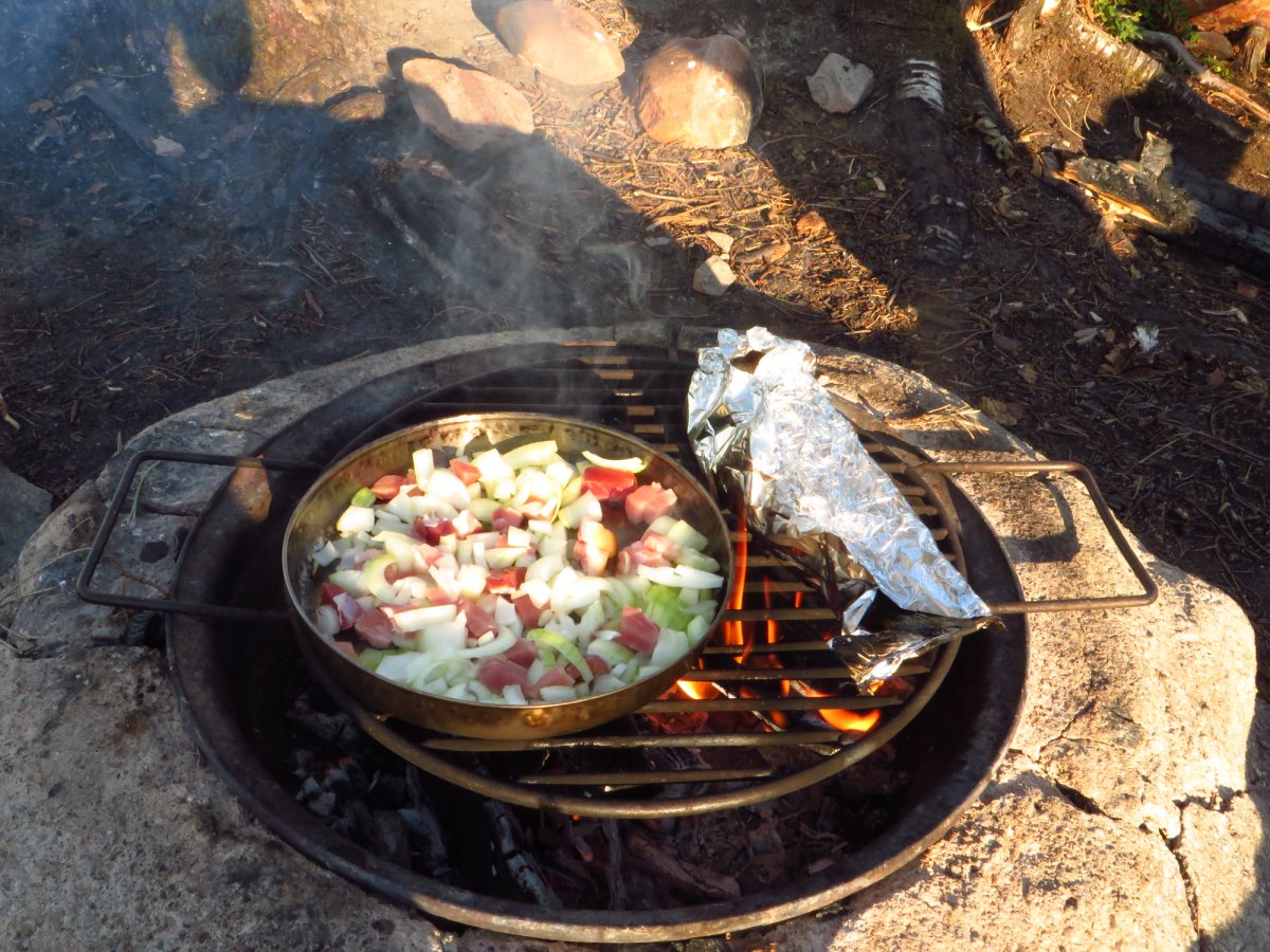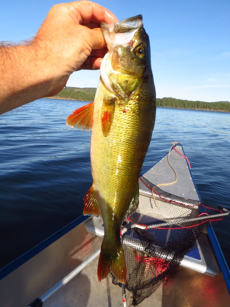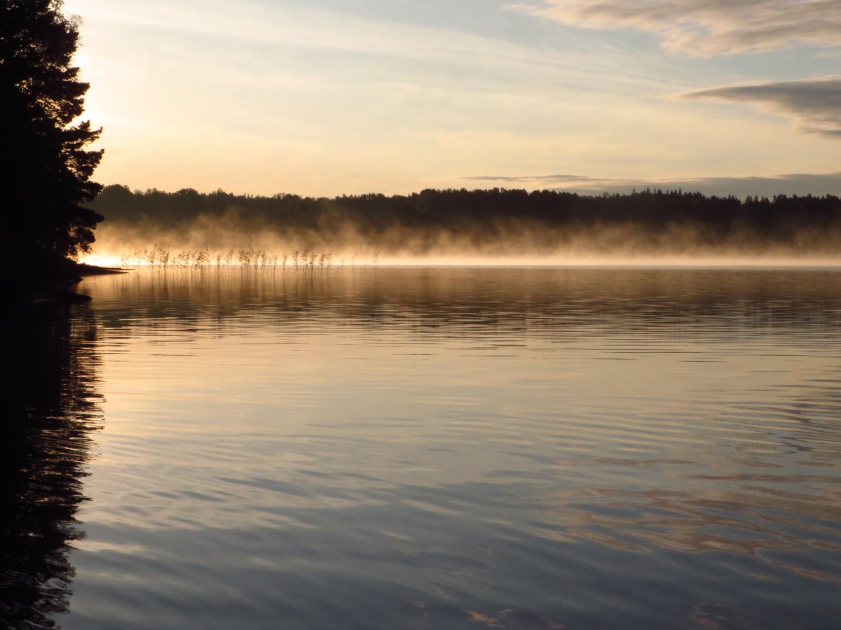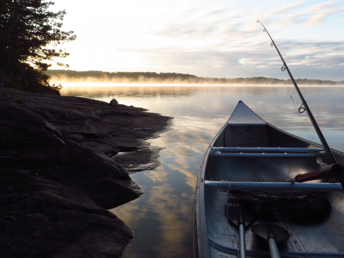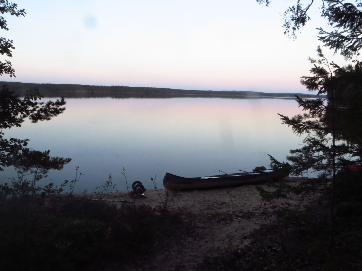 Schnell haben wir uns an den neuen Alltag gewöhnt. Mein Vater ist bei Sonnenaufgang aufgestanden und ist Angeln gegangen, während ich noch etwas die mollige Wärme meines Schlafsacks genossen habe. Sobald der erste Fisch des Tages gefangen war, wurde das Camp abgebaut, alles im Kanu verpackt und losgepaddelt, um einen schönen sonnigen Platz im Windschatten zu suchen fürs Frühstück. Nach einem reichlichen Frühstück aus der Provianttonne wurde weiter gepaddelt. Wir hatten es nicht eilig und konnten ganz in Ruhe die wunderschöne Landschaft und die Sonne genießen und zwischendrin immer mal wieder die Angel auswerfen. Eine geplante Strecke hatten wir dabei übrigens selten. Am Tag vor der Abreise aus Deutschland haben wir einen Blick auf die Karte geworfen und beschlossen nach Norden loszupaddeln. Danach haben wir jeden Abend auf die Karte geschaut und uns überlegt, wo wir am nächsten Tag lang paddeln könnten. Dieser „Plan“ wurde allerdings nicht selten bereits in der Frühstückspause und spätestens am Nachmittag über den Haufen geworfen. Schlussendlich haben wir uns jeden Abend einfach ein schönes Plätzchen gesucht und dort unser Lager aufgeschlagen. Wenn wir Glück hatten und einen freien DANO Lagerplatz gefunden haben, konnten wir ein Feuer machen und über der offenen Flamme kochen. Ansonsten kam der Spiritusbrenner zum Einsatz. Die Provianttonne von Scandtrack war mehr als reichlich gefüllt, sodass es uns an Nichts fehlte. Nur der gelegentliche frisch gefangene Barsch hat die Speisekarte erweitert. „Gelegentlich“ im Sinne von: Ich habe während dieser Kanutour so viel Fisch gegessen, wie das ganze restliche Jahr nicht! Während das Feuer noch langsam herunterbrannte, wurde auch immer direkt ein Topf Kaffee gekocht, der in eine Thermosflasche abgefüllt wurde. So konnte man den nächsten Morgen entspannt mit einer Tasse Kaffee starten konnte, ohne auf heiß Wasser warten zu müssen. Denn das Leben in der Natur ist entschleunigt und so dauert auch eine Tasse Kaffee kochen dort wesentlich länger als in der heimischen Küche.