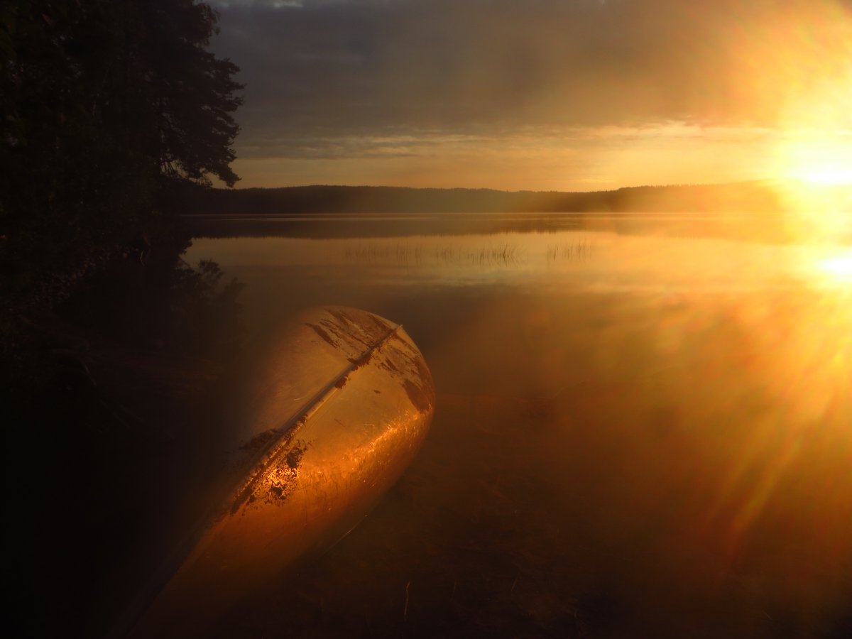 Bald stand unser Zelt für die erste Nacht und unsere Isomatten und Schlafsäcke waren eingerichtet. Und was macht man abends vorm ins Bett gehen, wenn man mitten in der Wildnis ist und kein Netflix schauen kann? Richtig, Angeln gehen. Auf einem spiegelglatten See haben wir unseren ersten Sonnenuntergang in Schweden beobachtet und direkt am ersten Abend einen 80cm Hecht gefangen. Damit konnte der Urlaub dann so richtig losgehen!