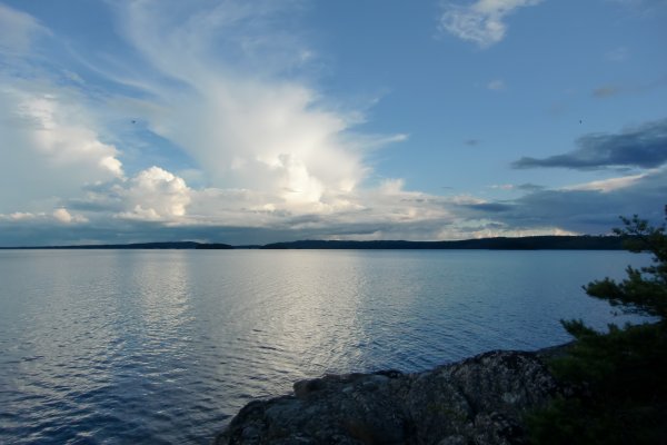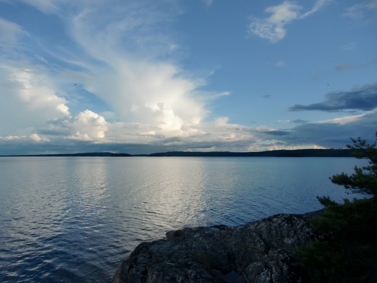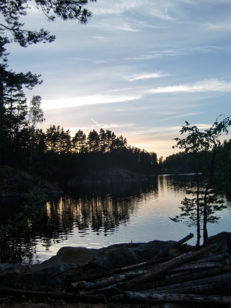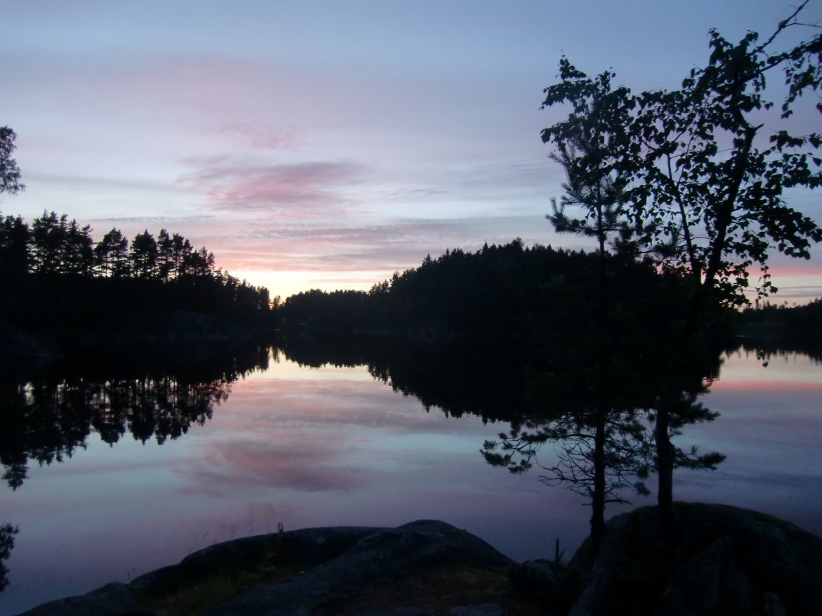 Am zweiten Tag war das Wetter leider immer noch recht trüb, aber nichtsdestotrotz machten wir uns gegen Mittag auf den Weg zurück Richtung Schweden. Auf dem Foxen angekommen schlugen uns dann auch noch hohe Wellen entgegen und da der nächste Rastplatz schon belegt war, blieb uns nichts anderes übrig als den Weg mitten über den Foxen bis zum nächsten Rastplatz anzutreten. Das war eigentlich die einzige Situation, in der wir Angst hatten, zu kentern und unsere Ausrüstung zu verlieren. Zum Glück ging alles gut und die Fahrt hatte sich im Endeffekt sogar gelohnt. Wir fanden eine kleine ruhige Bucht und konnten uns an einer Hütte ein gemütliches Lager einrichten, unser Lagerfeuer entfachen und den Abend mit dem ersten selbstgefangen Fisch ausklingen lassen.