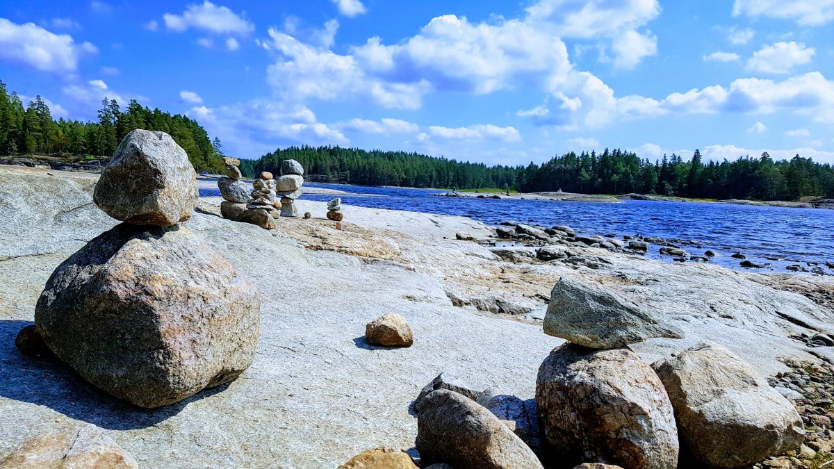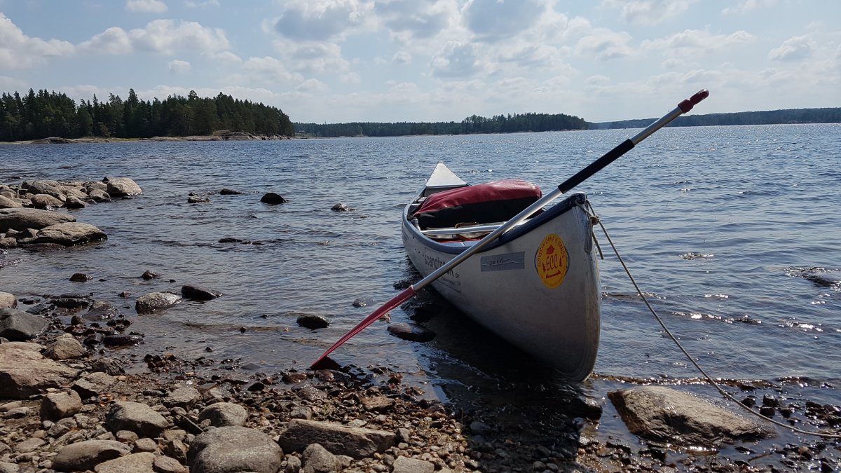 8.Tag und Abreise: Als nun mehr Outdoor-Erfahrene, fällt uns der letzte Basisabbau technisch nicht mehr schwer, emotional macht sich dennoch eine leichte Schwere breit. Bei perfektem Wetter macht es uns Schweden nicht leicht, die Heimreise anzutreten. Wir bauen das letzte Mal einen Steinhaufen, der nachfolgenden Scandtrackern eine schöne Rastmöglichkeit aufzeigen soll. Die letzten Meter sind viel zu schnell gepaddelt, es kommen ein paar Häuser in Sicht, voller Selbstbewusstsein überfahren wir fast noch eine Untiefe. Angekommen im Camp, verläuft die Rückgabe der Ausrüstung unkompliziert, das erste Mal genießen wir mit „Köttbullar“ ein warmes Essen. Viele An- und Abreisende kommen zusammen. Unsere Hoffnung auf eine ruhige Busfahrt hat sich, trotz ein paar Feierwütigen im Camp, wieder mal erfüllt. Die Entspannung, welche uns die schwedische Natur gegeben hat, fährt mit zurück nach Köln, wo uns bewusst wird „eine Kanutour mit Scandtrack jederzeit wieder“. Reim des Tages: Nicht lange drüber reden, auf geht’s mit Scandtrack nach Schweden.