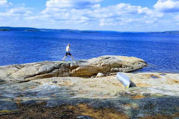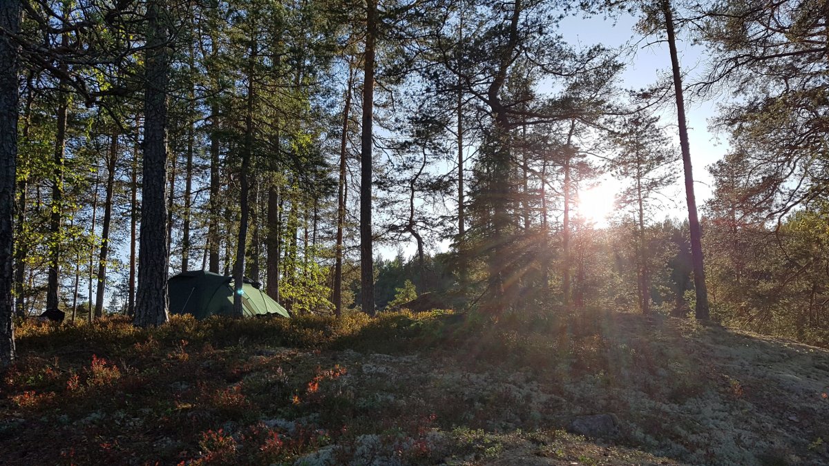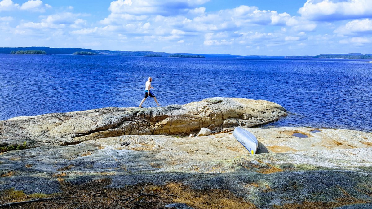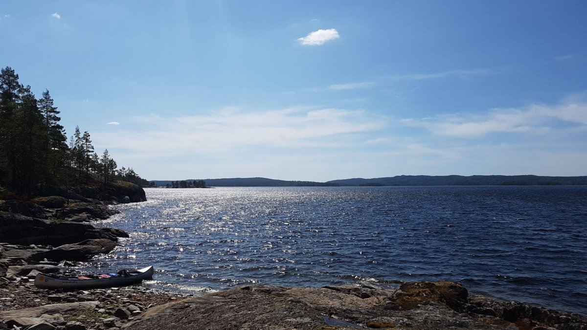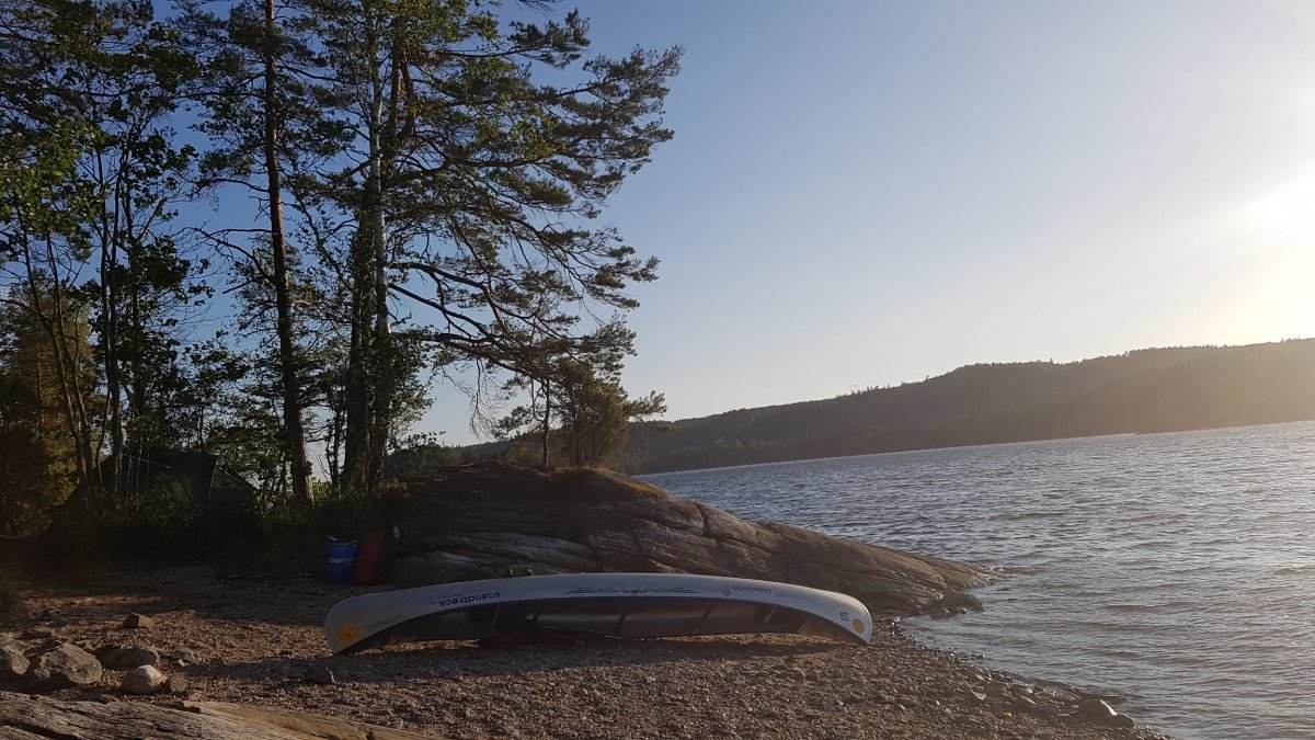 3.Tag: Heute hieß es Schwung in die Paddel zu bringen. Mit etwas Rückstand auf unserer selbst geplanten Tour sollten heute perfekte Bedingungen auf uns warten. Nach einem langen Tag auf dem Wasser landeten wir in einer einsamen Bucht und wurden mit einem der schönsten Sonnenuntergänge belohnt. Reim des Tages: Einen Sonnenuntergang in Schweden muss man unbedingt erleben. 4.Tag: Ganz mutig überqueren wir den See und setzen unsere Reise gen Süden fort. Recht früh aufgebrochen, erlaubten wir uns eine kleine Pause in einer winzigen Bucht, anscheinend kritisch beäugt von einem Elch, der sich lediglich mit röhrenden Geräuschen aus dem Dickicht bemerkbar machte. Gestärkt vom kurzen Power-Nap ab ins Kanu, nichts ahnend, dass wir heute eine eigene, einsame Insel finden werden, auf der wir die Nacht verbringen dürfen.