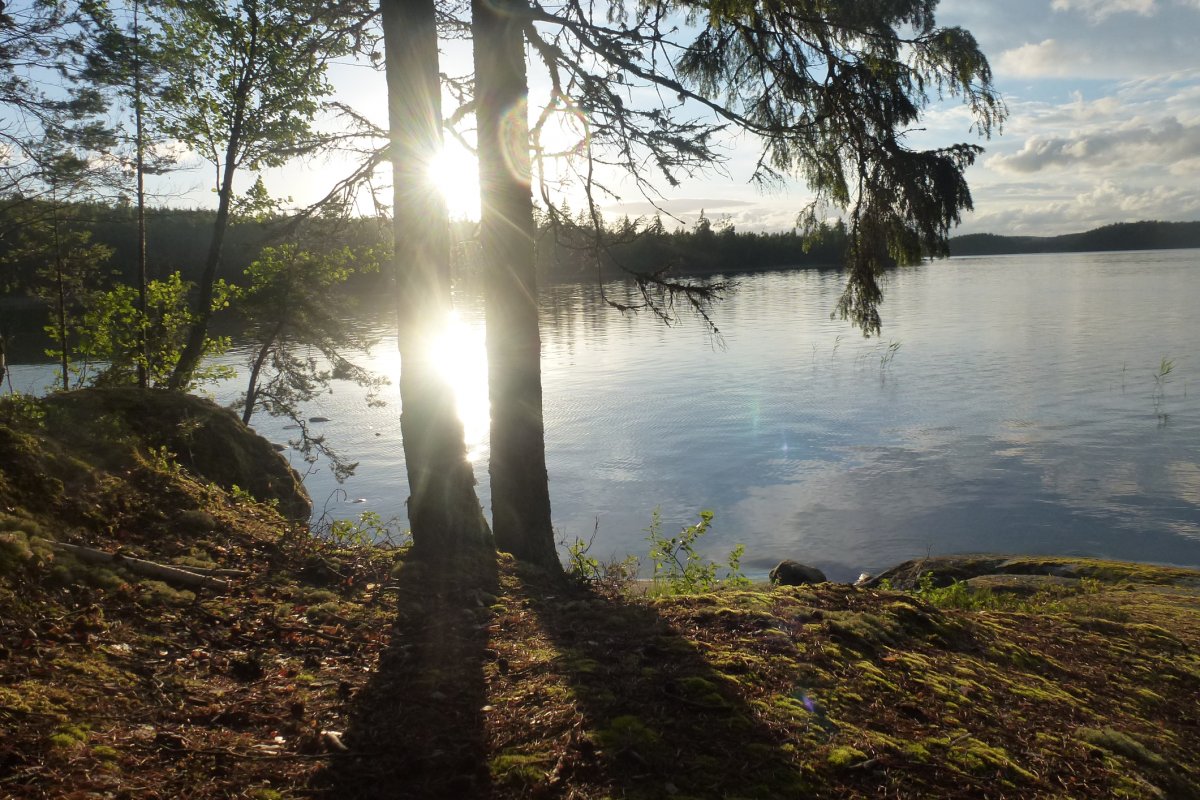 Nach einer windumtosten, aber erholsamen Nacht haben wir uns am zweiten Tag eingehender mit unserer Ausrüstung vertraut gemacht, die Ordnung verbessert und das Lager erneuert/ umgebaut. Aufgrund meiner Gehirnerschütterung, Wind und Gewitter über den ganzen Tag haben wir beschlossen an Ort und Stelle zu bleiben und erst am Montag weiter zu paddeln. Erst am Abend haben wir einen kurzen Ausflug um die Insel gemacht und festgestellt, dass die Kräfte wiedergekommen sind und die Reise am nächsten Tag wieder starten konnte.