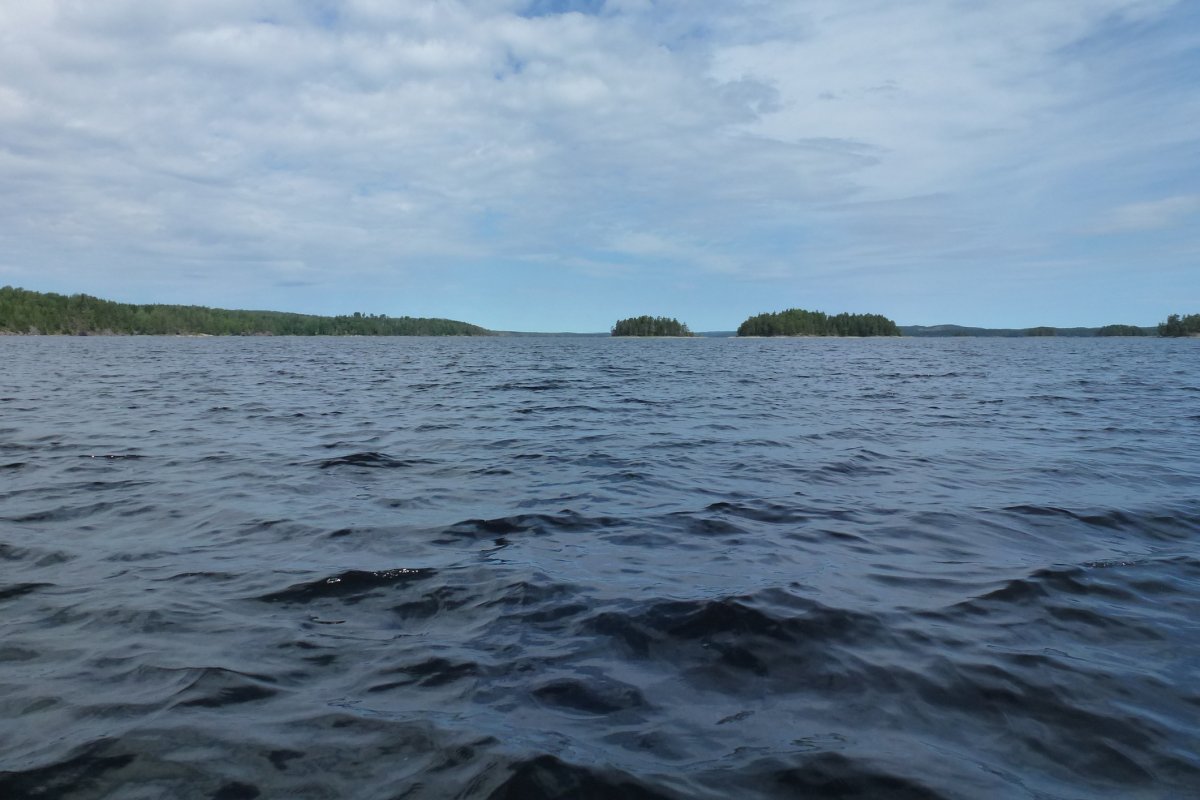 Durch die unveränderte Windprognose entschieden wir uns, an diesem Dienstag wieder zurück zu fahren und unser Lager in DANO 68 aufzuschlagen. Der Tag blieb das erste Mal trocken, jedoch frischte der Wind auf (Dauerwind von fast 30km/h – mit Böen bis fast 70 km/h). Da er jedoch von Westen kam und damit für uns ablandig war, konnten wir uns fast die gesamte Strecke im Windschatten der Bäume halten und kamen, mit ein paar Ausnahmen wo es keine Deckung vor dem Wind gab, gut voran. Das letzte Stück mussten wir jedoch einmal quer über den See übersetzen.