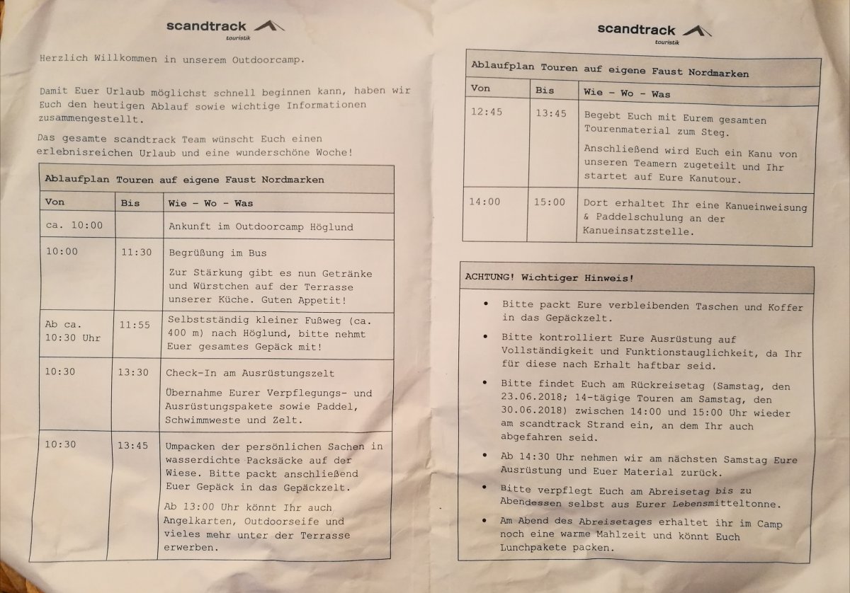 Zudem haben wir unseren Zettel „WWW – Wie Wo Was – Informationen Anreisetag“ von Scandtrack abfotografiert. Vielleicht hilft Euch das ja. ;-)