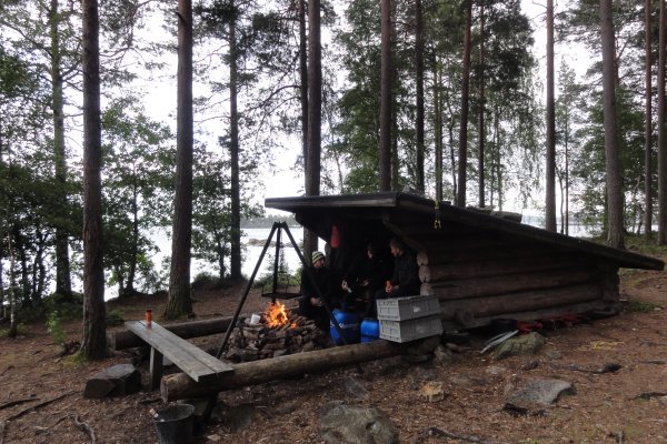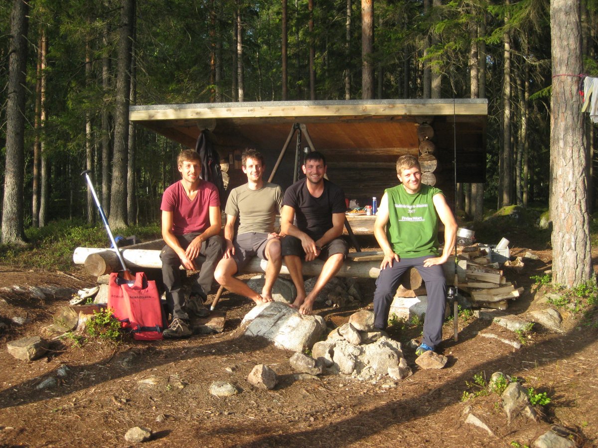 Waren es die Schutzhütten die wir nach dem 2. Tag für uns entdeckten, da dort nicht nur gespaltenes Holz und eine schöne Feuerstelle vorbereitet waren. In erster Linie war es die Lage - mit Blick auf den See und das Gefühl trotzdem draußen zu schlafen die uns dazu veranlasste immer öfters solche Hütten anzusteuern. Es war einfach perfekt. Man konnte schön gemütlich kochen, anschließend bei nem Bier zusammensitzen oder Karten spielen und sich abends gemütlich in die offene Hütte kuscheln, die für 4 Personen optimal Platz bot. Gewärmt durch das Feuer konnte man so glücklich, satt und zufrieden einschlafen.