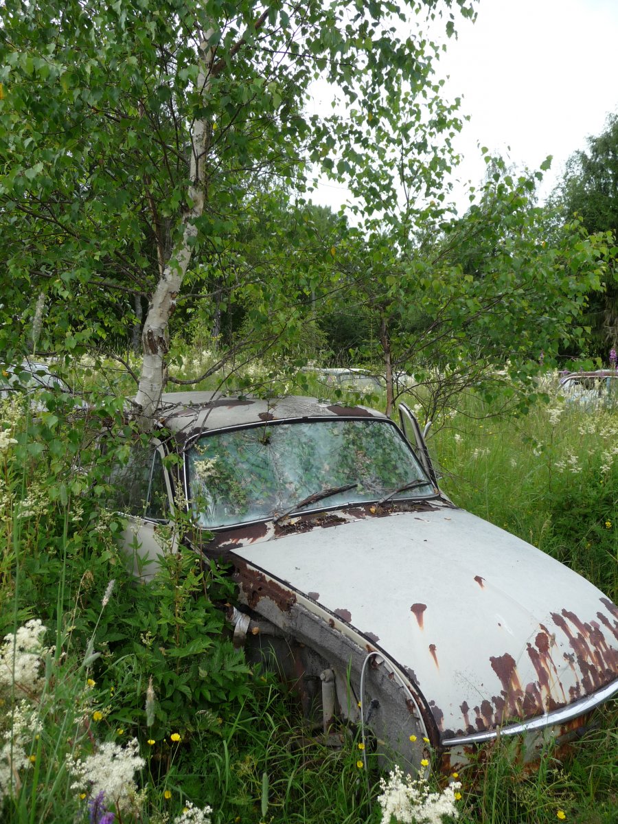 Abends stelle ich mich auf die Mutprobe und gehe schwimmen. Nach dem ersten Schock erscheint das Wasser gar nicht mehr so kalt, sodass Schwimmen auch Spaß macht.Sonntag 14.07.13 – Autofriedhof (Bastnäs)