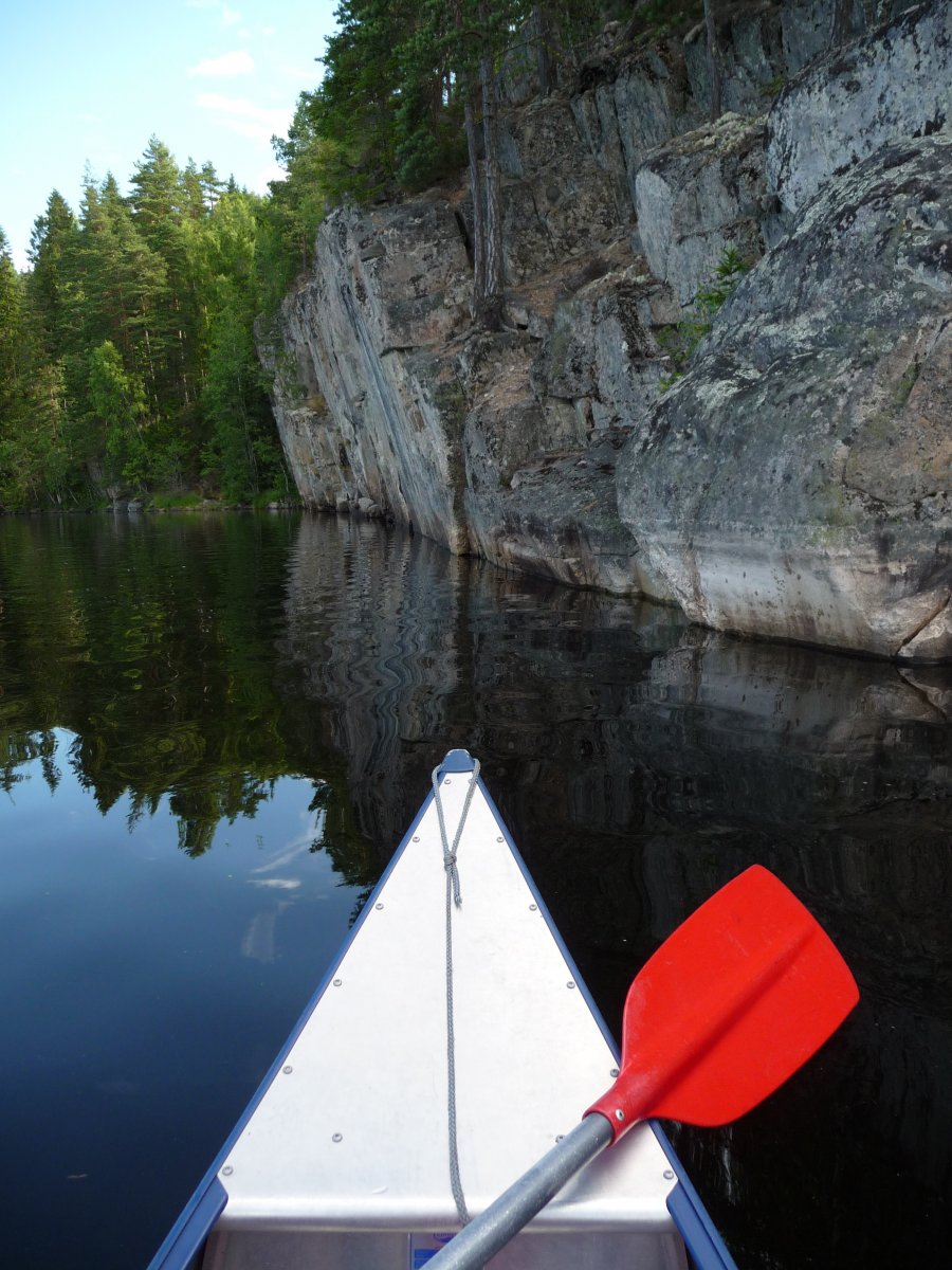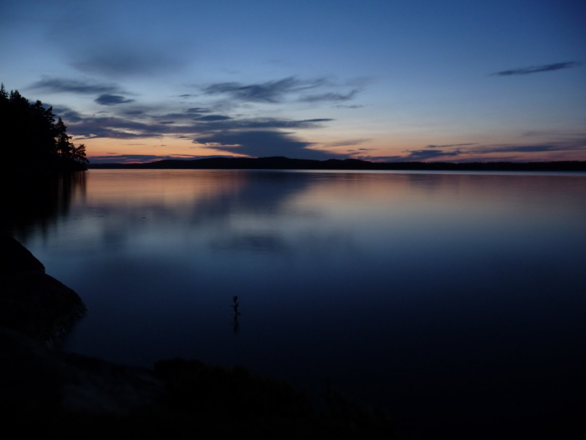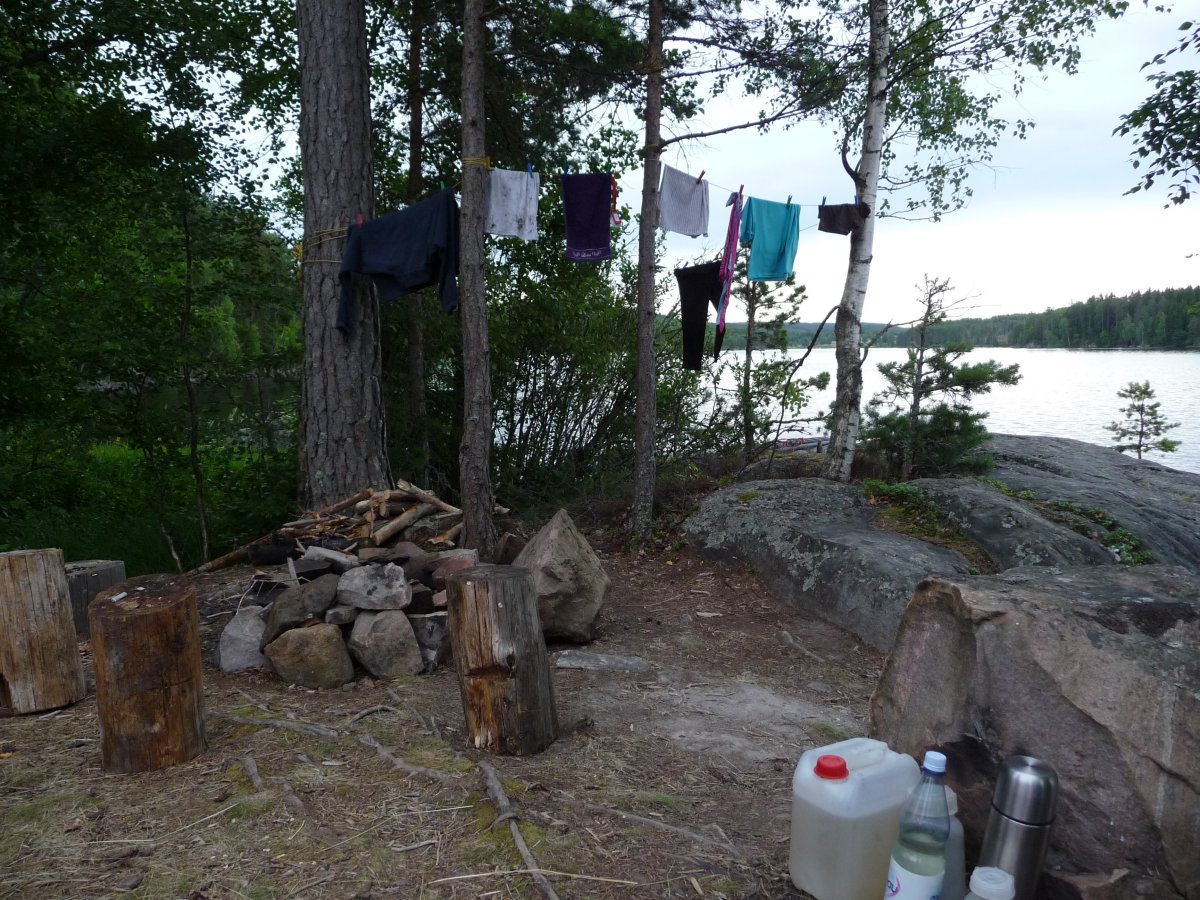 Und wieder ein sehr stiller morgen. Keine Motorboote. Doch plötzlich ein kreischender Schrei. Die Möwen schreien so laut, als ob es um ihr Leben gehen würde. Minute später wieder die Stille. Da wir jetzt wach waren beschlossen wir erst zu frühstücken und dann unsere Reise weiter fort zu setzen. Wir paddeln auf einem völlig glatten See bis zum kleinem Örtchen Fölsbyn. Dort gehen wir kurz an Land, um unser Müll zu entsorgen. Wildcampen wird heute weiter fortgeführt. Auf einem schönen Plätzchen neben dem Camp Nr. 35. Auch hier gibt es viele Beeren und einen schönen großen Felsen, auf dem man sich gut sonnen lassen kann. Heute werden meine künstlerischen Fähigkeiten weiter trainiert.