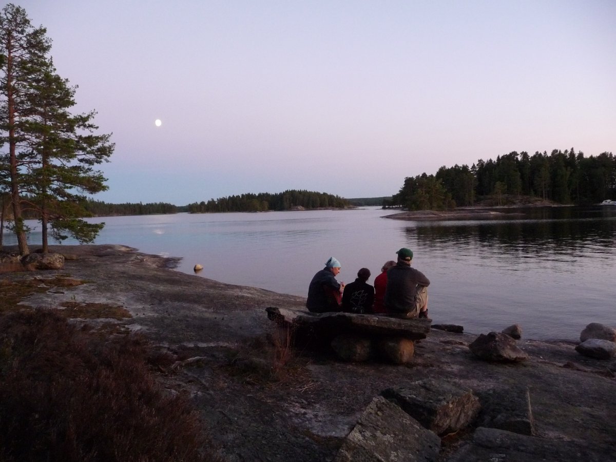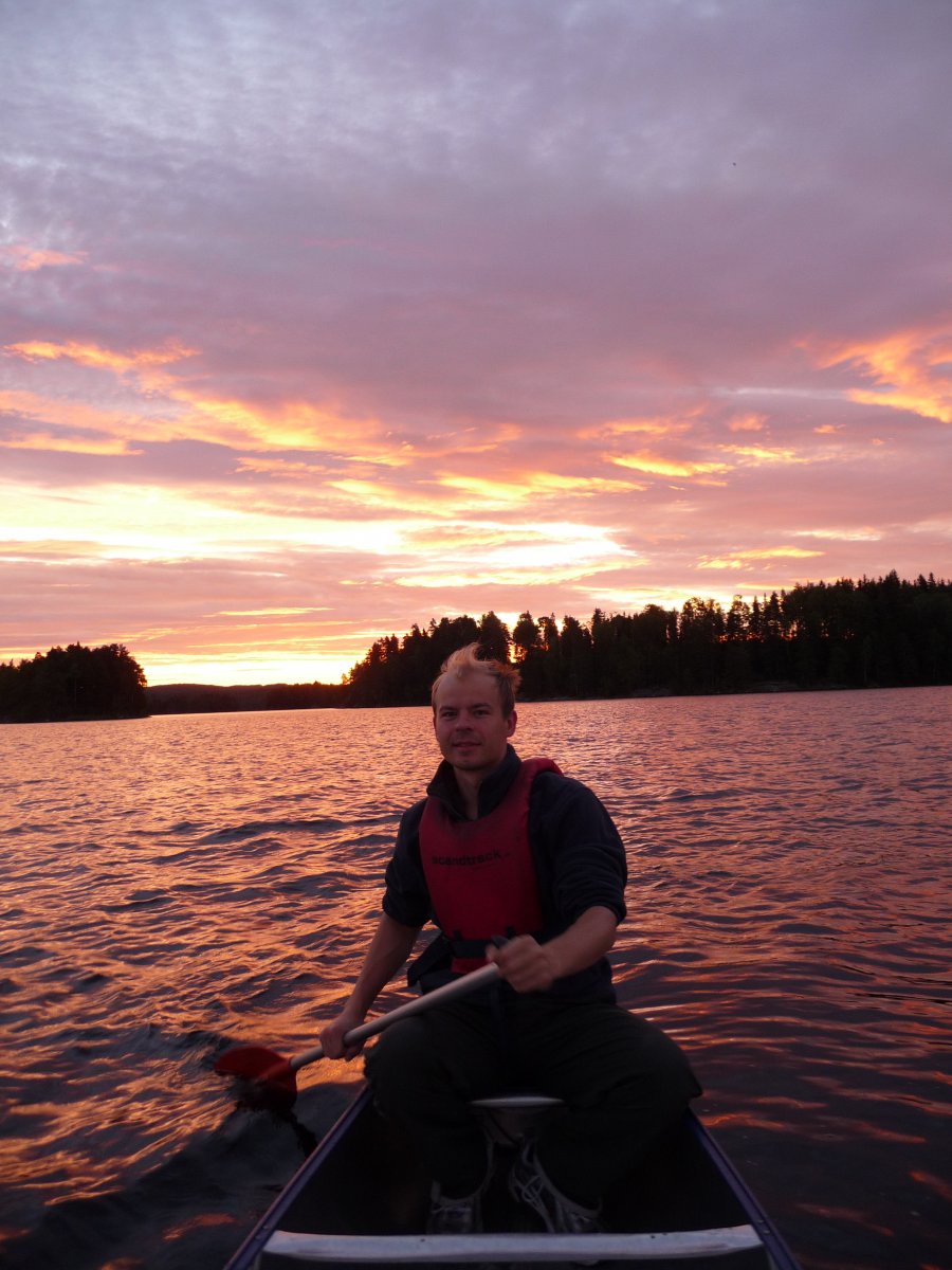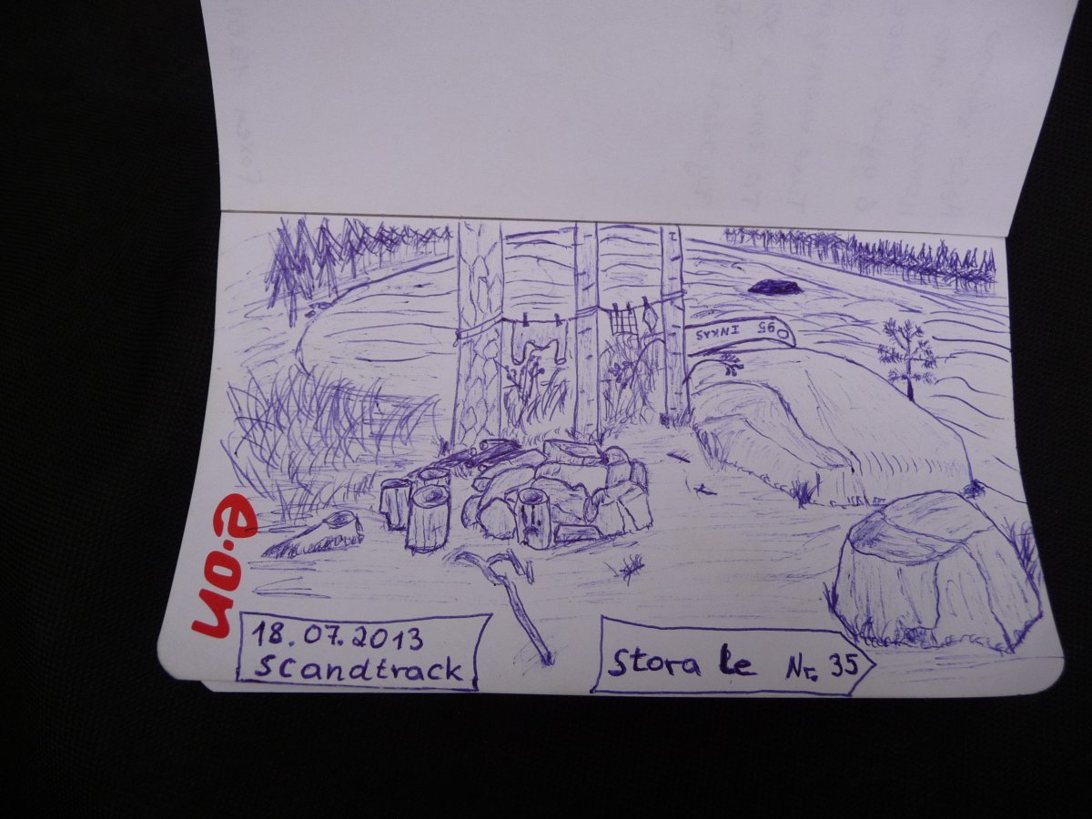 Und wieder ein sehr stiller morgen. Keine Motorboote. Doch plötzlich ein kreischender Schrei. Die Möwen schreien so laut, als ob es um ihr Leben gehen würde. Minute später wieder die Stille. Da wir jetzt wach waren beschlossen wir erst zu frühstücken und dann unsere Reise weiter fort zu setzen. Wir paddeln auf einem völlig glatten See bis zum kleinem Örtchen Fölsbyn. Dort gehen wir kurz an Land, um unser Müll zu entsorgen. Wildcampen wird heute weiter fortgeführt. Auf einem schönen Plätzchen neben dem Camp Nr. 35. Auch hier gibt es viele Beeren und einen schönen großen Felsen, auf dem man sich gut sonnen lassen kann. Heute werden meine künstlerischen Fähigkeiten weiter trainiert.