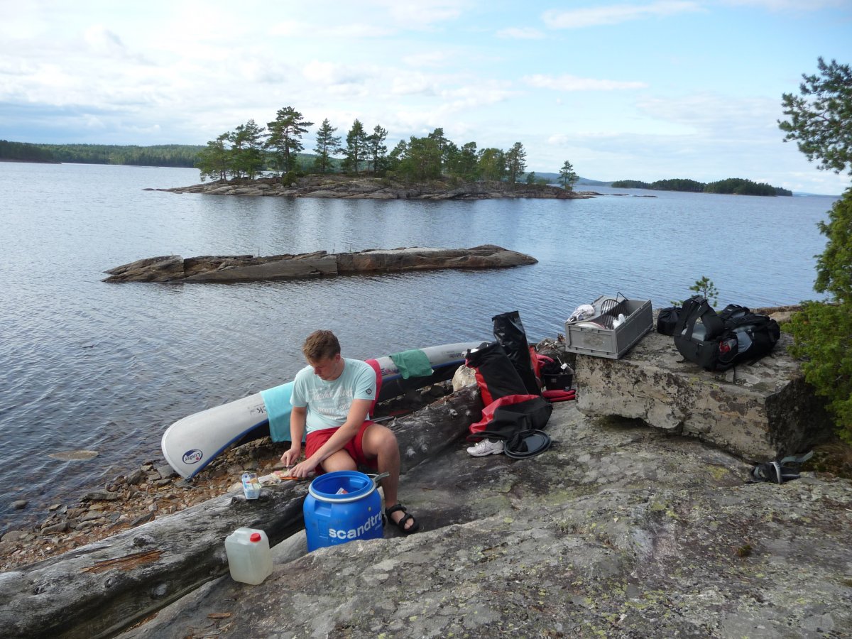 Die Anreise war sehr unkompliziert und stellte sich durch die beiden Fährfahrten bereits als das erste Highlight raus. Im Camp angekommen begann die Vorbereitung für die bevorstehende Woche Schlag auf Schlag. Es gab kurz eine Verpflegung und schon ging es los, wir bekamen unsere Ausrüstung und gleich darauf saßen wir auch schon in unserem Kanadier und fingen an die Route zum ersten Camp festzulegen.