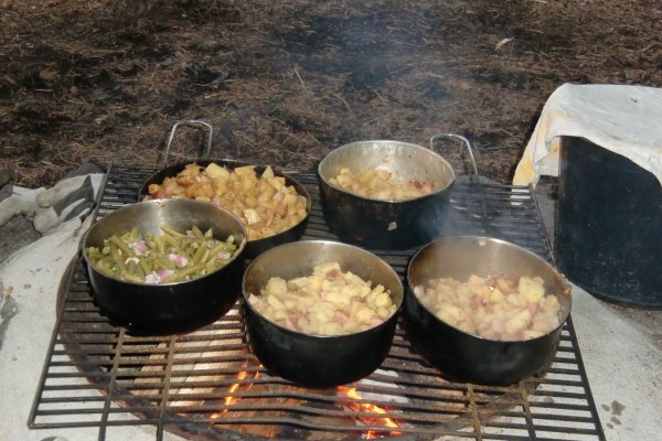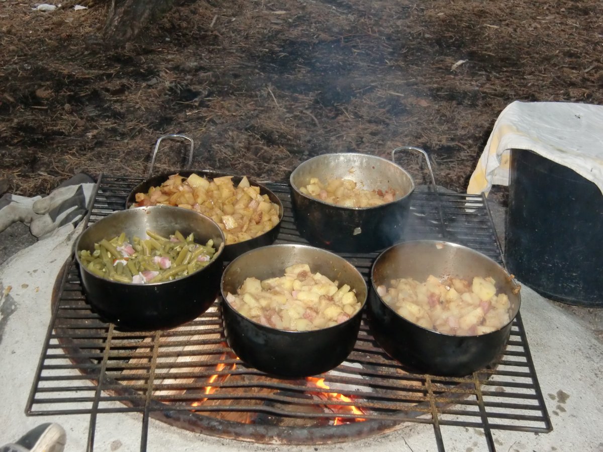 Für das Frühstück war die Essenstonne reich bestückt, es gab genug Vollkornbrot und Müsli. Abends haben wir zwei Mädels unsere Kreativität beim Kochen ausgelassen. Es gab Nudeln mit Käse- oder Tomatensoße, Bratkartoffeln, Blaubeerkuchen (natürlich mit selbstgesammelten Blaubeeren), Stockbrot mit Nutella etc. Unser Lieblingsgericht war auf jeden Fall die Outdoorpizza! Das war die beste Pizza, die ich bis jetzt gegessen habe! :) Manchmal gab es noch selbstgefangen Fisch, wenn unsere Jungs denn erfolgreich waren…