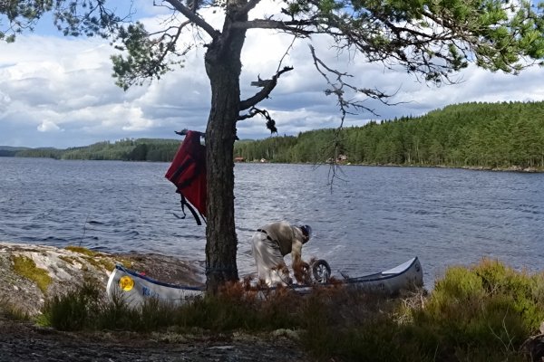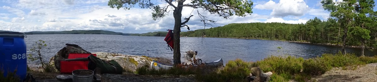 Der Mitarbeiter vor Ort war sanftmütig. Er liebte das Wasser, den Wind, die Natur. Das fanden wir gut. Von ihm nahmen wir gerne Ausrüstung und Proviant entgegen, schleppten alles runter zum Ponton. Kanu beladen, ahoi, dann vor uns, hinter uns, rechts und links nur noch der Övre Gla.