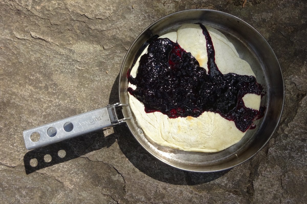 Es war Samstag. Gegen 15:00 Uhr wollten wir uns im Außencamp einfinden. Morgens sammelte ich noch weitere Preiselbeeren. Dann entglitt mir ein Topf voll mit heißem Wasser überbrühter Blaubeeren aus dem Alu-Griff des Kochersets. Alles umsonst gesammelt! Wir diskutierten das aus, da mir dieses Malheur bereits zum zweiten Mal passiert war und ich erneut Gefahr lief, mit dem Etikett „unfähig“ ausgezeichnet zu werden. Immerhin kam es zu einer technischen Lösung. Wir entdeckten, dass man den Zeigefinger immer gestreckt auf dem Griff halten sollte, denn bereits beim geringsten Spiel konnte ein gefüllter Topf leicht aus der Umklammerung herausrutschen.