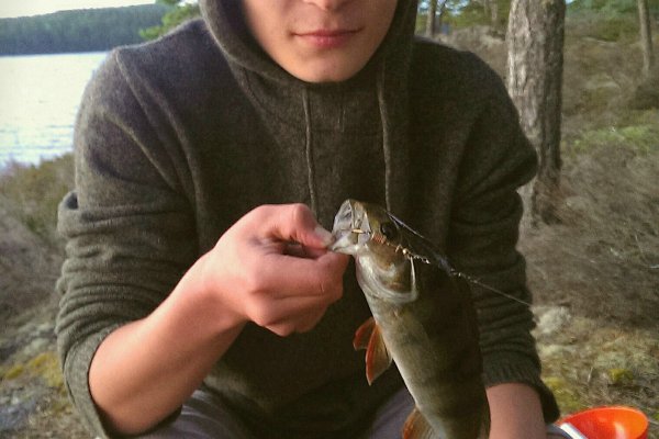 Wir pflückten Blaubeeren, von denen es in diesem Jahr reichlich gab. Dann kochte der Sohn verquollenene Nudeln mit Tomatensoße, die aßen wir. Derart gestärkt gingen wir in der Dämmerung noch einmal fischen. Der Wind trieb das unbeladene Kanu parallel zum Ufer. Das war uns recht, konnten wir auf diese Weise doch eine größere Strecke beangeln. Etwa 50 cm über einem 25 Gramm schweren Birnenblei hatte ich einen kleineren Gummifisch geknüpft. Der sprang nun munter über den Gewässergrund. In ca. 5 Meter Wassertiefe gab es dann endlich den ersehnten Ruck, und wenig später zappelte ein 25 cm langer Barsch über die Bordwand. Nach einiger Zeit ein zweiter an der gleichen Stelle. Dann kehrten wir zurück. „Das fängt ja nicht schlecht an“, meinten wir, kuschelten uns in die Schlafsäcke und glitten hinab ins Land der Träume.