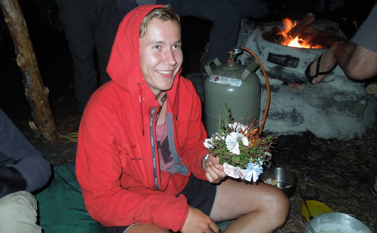 Bedeckter Himmel, 19°. Doch schon an der Schleuse in Lennartsfors lacht wieder die Sonne vom blauen Himmel zwischen den wuchtigen Wolkenbergen. Wir füllen mit unseren Kanus die drei Kammern dieser alten und ehrwürdigen Schleuse, kurz nach 12:00 Uhr sind wir wieder auf dem Foxen. Gegenüber der Insel Kollön bauen wir das letzte Lager, den letzten Windschutz. Nach dem Abendessen noch einmal Pancakes. Als Anerkennung für seine souveräne Leistung bekommt Eric einen kleinen inhaltsreichen Strauß, Udo bedankt sich im Namen der Gruppe bei unserem Super-Guide. Die letzte Spülorgie und noch einmal ein schöner Sonnenuntergang. Wo waren eigentlich die Moskitos? Ich habe auf der gesamten Tour fast keine unangenehme Begegnung mit diesen Quälgeistern gehabt. Trage allerdings lange Ärmel, lange Hosen und hohe Schuhe.