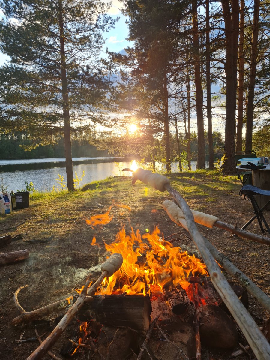 Am Feuer bereiteten wir unser Abendessen vor, darunter auch das traditionelle Stockbrot. Mit Stöcken in der Hand und Teigklumpen darauf gegrillt, genossen wir das warme, knusprige Brot, das unsere Geschmacksknospen verwöhnte. Es war ein einfaches, aber köstliches Vergnügen, das uns daran erinnerte, wie wenig wir eigentlich brauchen, um glücklich zu sein. Inmitten der Natur und mit gutem Essen umgeben, fühlten wir uns im Einklang mit uns selbst und der Welt um uns herum.