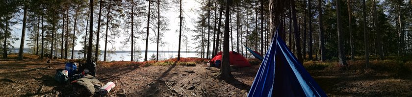 Unser Zelt haben wir in einem kleinen Waldstück direkt vor dem Strand aufgebaut, dieser Ausblick war einfach einzigartig. Abends gab's dann Bratkartoffeln in der einbetonierten Lkw Felge auf der anderen Seite der Insel. Wir waren in der Zeit auf Tour, in der es so heiß und trocken war - also durften wir kein Feuer machen und (noch die ersten 2 Tage) in den Felgen auf dem Spiritus Kocher kochen. Dies war echt kein Problem :-) Nach einem netten blackstory-Abend mit ein paar anderen Leuten von der Insel haben wir geschlafen wie 2 Steine.