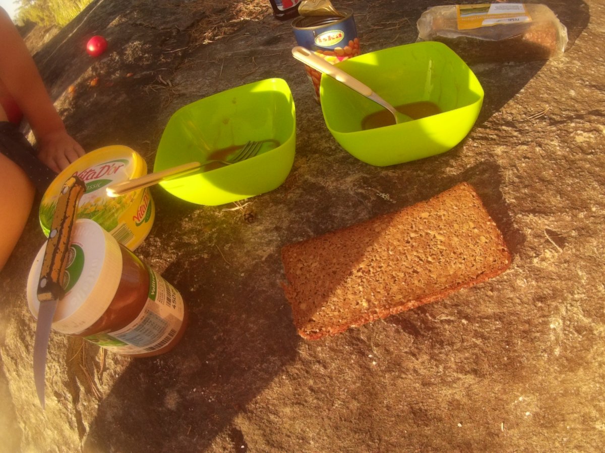Hier bekamen wir abends eine SMS - absolutes Feuerverbot - auch das Kochen in den LKW Felgen bei den Danos war nun verboten. Auch wenn kurz eine Art Ratlosigkeit herrschte, so war es im Endeffekt gar kein Problem. Es gab so viel leckeres Essen in der Tonne, aus dem man mit etwas Kreativität auch ohne Feuer etwas Leckeres zaubern konnte. So gab's die Kidneybohnen mit passieren Tomaten und Champignons einfach roh und etwas aufgewärmt von der Sonne - in so einem Urlaub lässt man sich eben von nichts aus der Ruhe bringen :D.