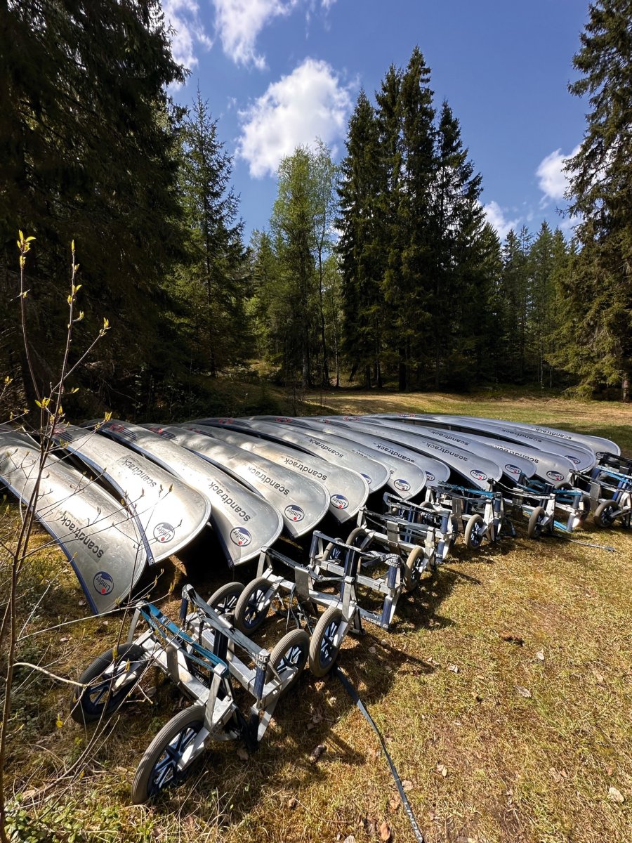 Obwohl man immer wieder Neues entdecken konnte, entschieden wir uns, auf den nördlichen Övre Gla See umzusiedeln, um auch dort neue Erfahrungen sammeln zu können. Wir machten uns auf den Weg Richtung Scandtrack Basislager, um von dort aus unsere Umsiedlung zu starten. Unsere 5 Kanus waren schnell auf dem Kanuwagen angebracht und wir starteten zügig den Laufweg Richtung der Glaskogen Tourist Information, welcher deutlich anstrengender als ursprünglich geplant war. Wir legten einen kurzen Stopp bei besagter Tourist Information ein, um uns mit hopfenhaltigen Kaltgetränken für die kommenden Tage zu versorgen.