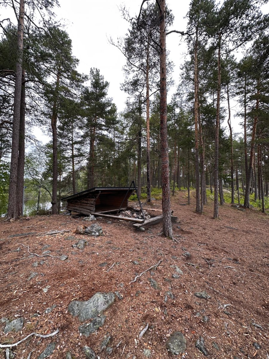 Nach einem aufregenden und lehrreichen ersten Tag auf dem Wasser erreichten wir unseren Lagerplatz, der sich direkt am malerischen Ufer des Sees befand. Bereits vom Wasser aus sahen wir, dass dieser mit einer Feuerstelle, Holzbänken sowie einer Holzüberdachung ausgestattet war. Das Gefühl der Entschleunigung überkam uns, als wir das Kanu am Ufer festmachten und unsere Füße auf festen Boden setzten.