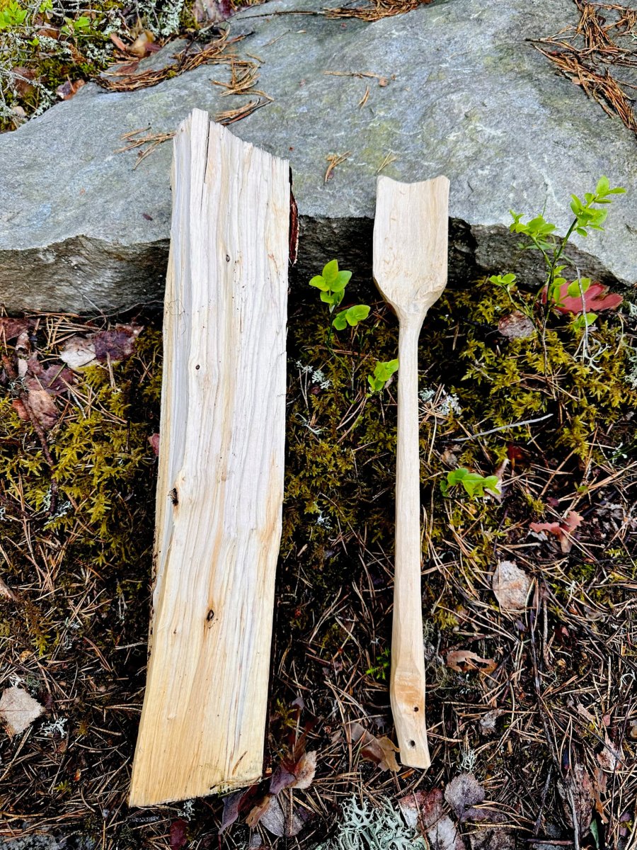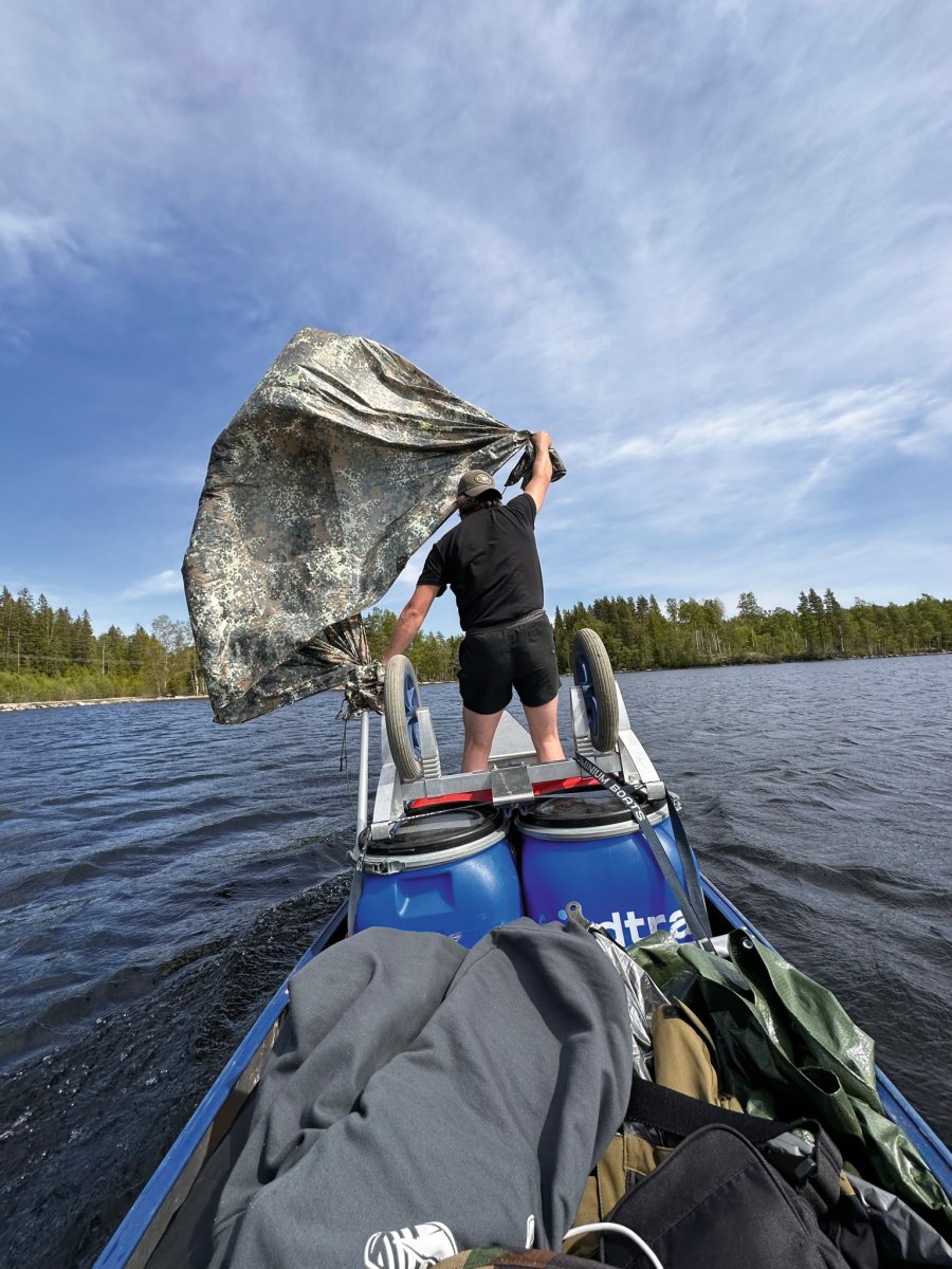Schließlich erreichten wir den Övre Gla, der bereits nach wenigen Minuten auf dem Wasser optisch nicht mit dem vorherigen See zu vergleichen war. Deutlich schmaler wirkte dieser eher wie ein Fluss, was sich aber nach einiger Zeit und dem Durchqueren mehrerer Verengungen veränderte. Es wurde landschaftlich dann schnell weitläufig und durch den zunehmenden Wind hatten wir gerade mit der Strömung zu kämpfen. Wir beschlossen, den nächsten Lagerplatz zu suchen, um dort den restlichen Tag zu verbringen und auf abklingendes Wetter zu hoffen. Bereits beim Lagerbau war der Wind direkt am Wasser noch so stark, dass wir uns im Landesinneren niederließen, was aber keineswegs die Stimmung in unserer Gruppe trübte. Schnell entschieden wir uns, noch eine weitere Nacht am selben Ort zu verbringen. Jeder wollte schließlich sein angefangenes Schnitz-Projekt zu Ende bringen, um für zuhause ein Mitbringsel zu haben. Egal ob Kochlöffel oder ein Herz aus Holz, jeder von uns verbrachte mehrere Stunden am Wasser, um seiner Kreativität freien Lauf zu lassen. Am Abend ließen wir die letzten Tag Revue passieren und machten Pläne für die restlichen wenigen Tage und die auch schon bevorstehende Abreise.