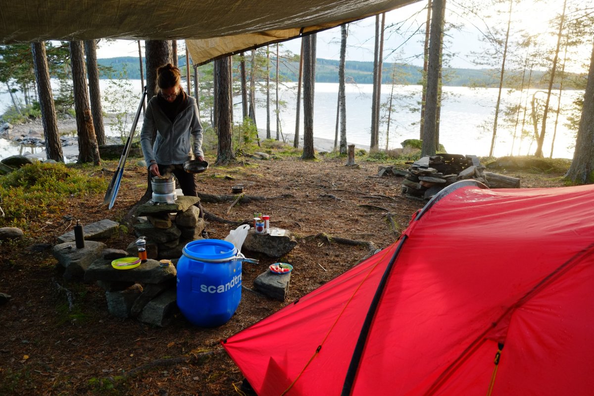 Zu schnell sollte man jedoch auch nicht mit Kochen fertig und im warmen Schlafsack verschwunden sein, denn dann verpasst man den wunderschönen Sternenhimmel über der schwedischen Wildnis. Ausschlafen kann man am nächsten Morgen ja auf jeden Fall und dann das Frühstück direkt am See als Picknick genießen.