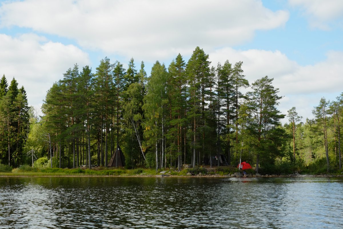 Ausgerüstet mit Kanu, Verpflegungspaket, Outdoorpaket und jeder Menge Enthusiasmus bezogen wir die eigenen vier Wände unseres Tipis, direkt am See. Das Tipi war unser „Kompromiss“ gewesen, unser Rückzugsort sollte es regnen. Es stellte sich heraus, dass es das Wetter gut mit uns meinte, und wir jeden Tag im Zelt nächtigen konnten. Das Tipi diente uns als Lagerstätte in unserem Basislager am See.