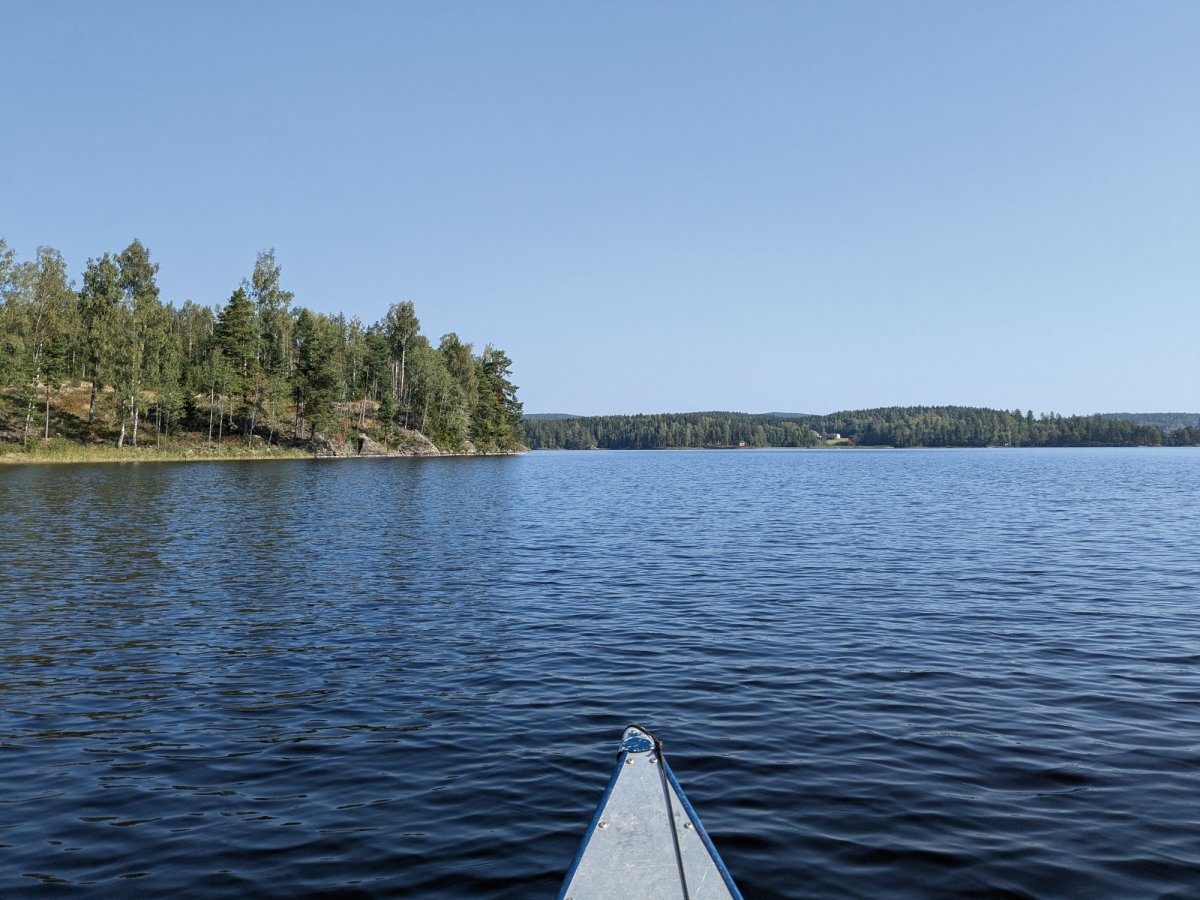 An Tag Nummer sieben verließen wir den Norden, um nicht allzu weit vom Outdoorcamp zu sein. Schließlich mussten wir am Samstag dort wieder ankommen. Zugleich wollten wir aber auch nicht auf eine der Inseln in unmittelbarer Nähe übernachten, da dort relativ viele andere Gruppen bereits ihre Zelte aufgeschlagen hatten. Dementsprechend entschieden wir uns nach einer Tour in Richtung Süden, in einen östlichen Seitenarm zu fahren. Dieser war an einigen Stellen vergleichsweise schmal, war insgesamt aber echt lang. Von anderen Gruppen war hier weit und breit keine Spur. So hatten wir auch in unserer letzten Nacht eine ruhige Stelle für uns zu zweit.