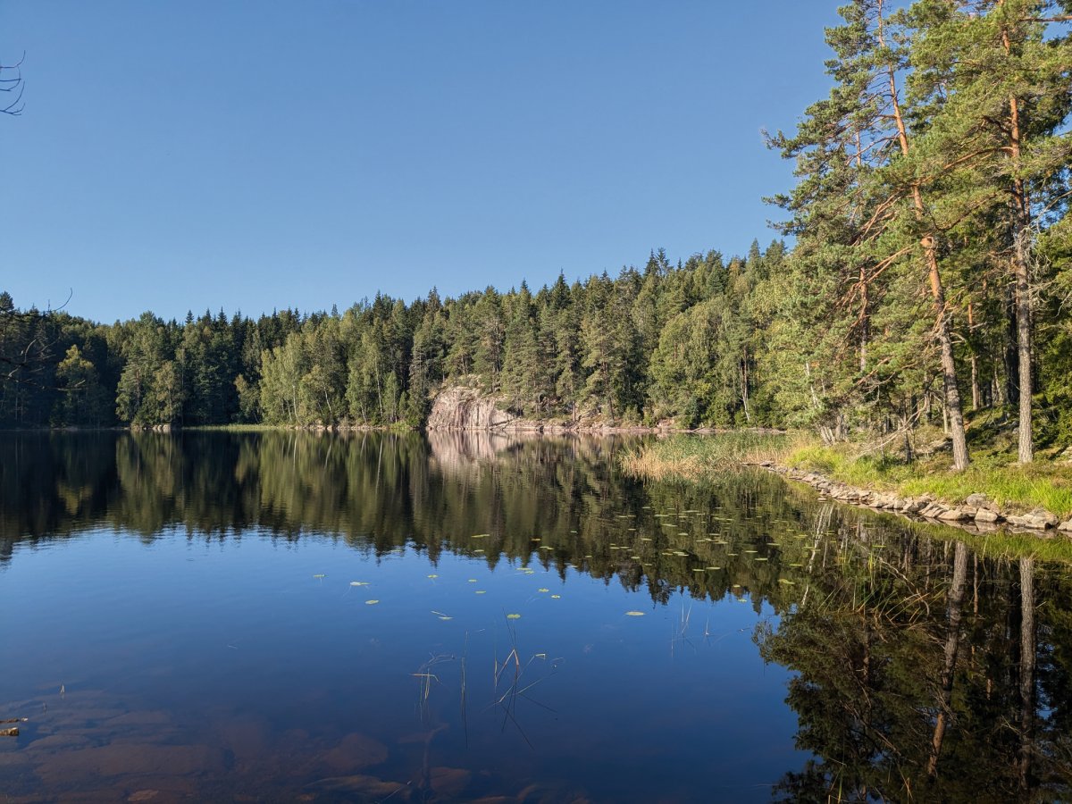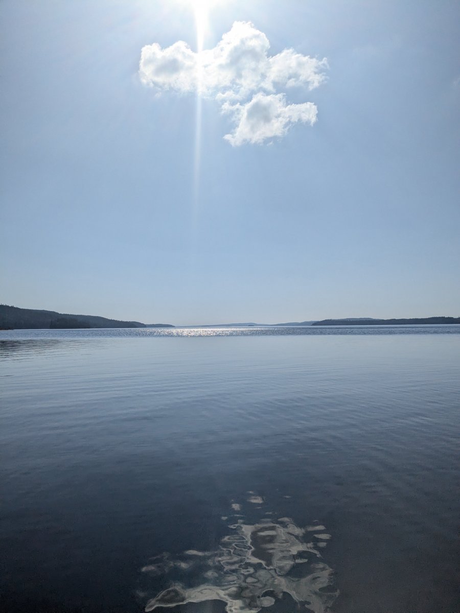 Tatsächlich fing ein starkes Gewitter früh morgens an. Um acht Uhr war von diesem aber nichts mehr zu spüren. Stattdessen startete unser Tag angenehm bewölkt. Und so sollte es auch den gesamten Tag bleiben. Von dem angekündigten Regen bekamen wir nichts mit. So kam es, dass wir an diesem Tag erneut viel Strecke zurücklegten und uns am Nachmittag kurz vor Töcksfors befanden. Dort hatten wir eine schöne Stelle für die Nacht gefunden.