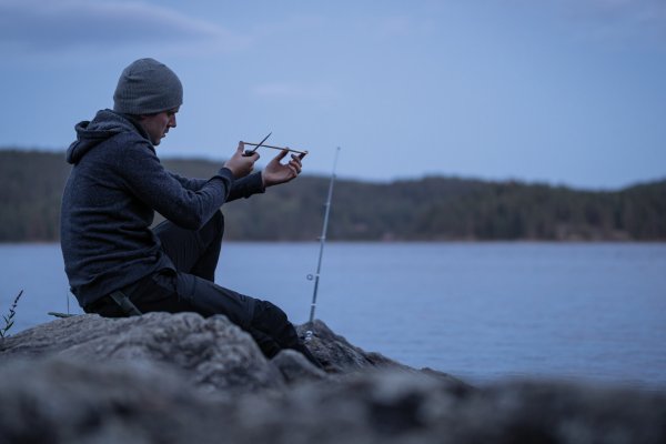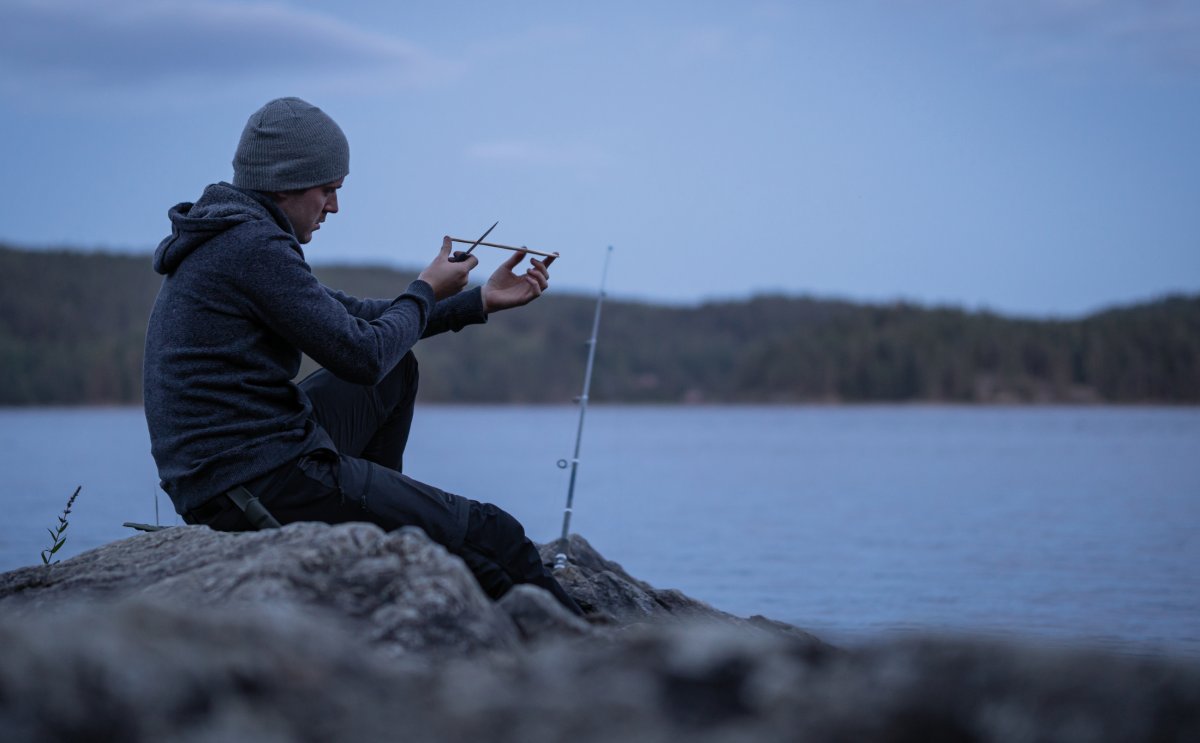 Nachdem wir alles aufgebaut hatten warfen wir wieder die Angel aus, in der Hoffnung einen Fisch für das Abendessen zu fangen. Dadurch, dass wir die letzten Tage fast nur gesegelt sind, hatten wir einen ziemlichen Energieüberschuss. Wir nutzten also die Wartezeit beim Angeln, und begannen zu schnitzen. Mit unserem Mora Schnitzset schnitzend wir uns einen Esslöffel und einen Pfannenwender. Aber auch als wir damit fertig waren, hatte noch kein Fisch angebissen.