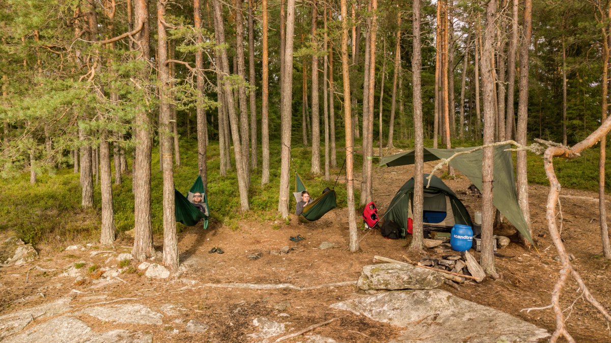 Der Letzte Tag, bevor es wieder zurück ging. Diesen Morgen haben wir uns dazu entschieden, dass wir heute nicht weiterfahren wollen, da die Insel in perfekter Entfernung zum Camp lag. Wir sind also auf der Insel geblieben und haben nur den Platz gewechselt. Dadurch hatten wir genug Zeit und Energie für unser heutiges Projekt und das brauchten wir auch, denn wir haben uns eine Schwitzhütte gebaut. Nach unserem Dampfbad und einer weiteren heißen Dusche, haben wir unsere Vorräte geplündert und uns eine letzte Mahlzeit über dem Feuer zubereitet. Und dann sind wir auch schon kaputt in unser Zelt gefallen.
