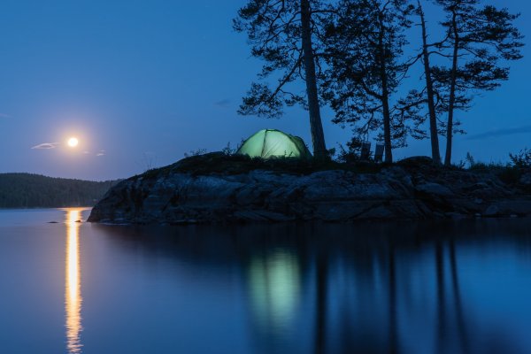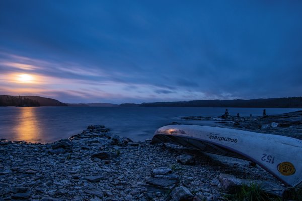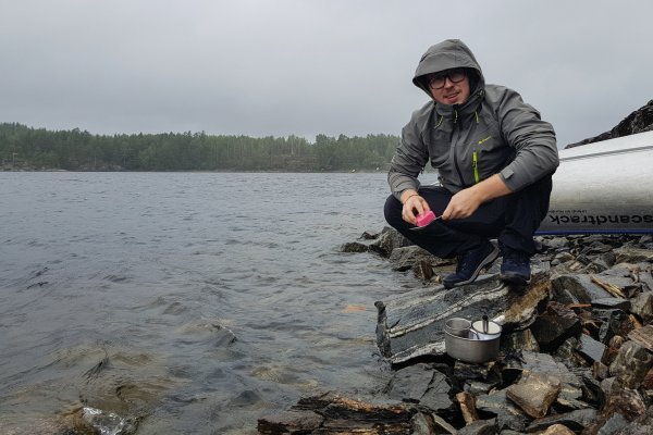 Nach ca. 3-4 Stunden gegen den Sturm paddeln hatten wir grade mal 5 km geschafft. Wir waren vollkommen erschöpft und auch etwas frustriert darüber, unser eigentliches Ziel heute nicht mehr zu erreichen. Somit haben wir uns dazu entschlossen, die nächste Insel angefahren, um dort unser Lager aufzuschlagen. Unsere Laune steigerte sich durch die Aussicht, an einem Sandstrand zu zelten. Als das Lager soweit stand, ging es erstmal in den See zum Schwimmen. Danach wurde geduscht. Ja richtig gelesen, wir haben geduscht! Wir hatten extra eine 30L Solardusche mitgenommen, allerdings fehlte uns dafür die Sonne. Deswegen haben wir Wasser über dem Feuer auf ca. 60°C erhitzt und dann 1:1 in den Wasserbehälter der Dusche gefüllt. Somit gab es nach dem kühlen Bad eine angenehm warme Dusche. Die Dusche ließ uns schnell vergessen wie kühl und nass es bisher war.