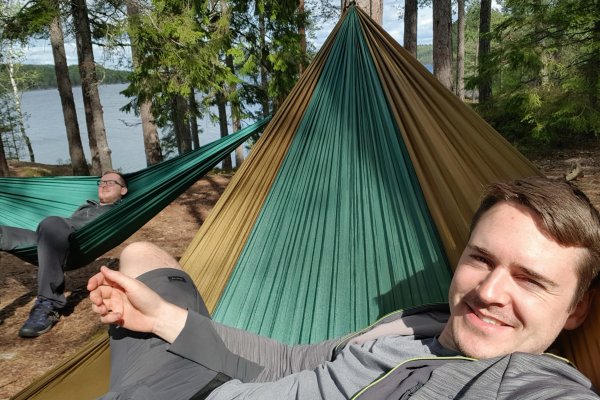 Wir nutzten die Insel von Tag eins um unser Lager aufzuschlagen. Dieses Mal an einer besseren Stelle, damit sich kein Wasser unter unserem Zelt sammeln kann. Man lernt halt auch dazu in so einem Urlaub. Durch die schnelle Fahrt waren wir früh auf der Insel und waren, bisher jedenfalls, die einzigen auf der Insel und am Dano. Das Sollte sich dann aber recht schnell ändern. Das Dano 8 ist ein sehr beliebtes Dano. Die Insel liegt auf jeden Fall auf einer Route einer Französischen Kanuverleih Organisation. Wir lagen noch eine Weile in unseren Hängematten und gingen Angeln, bevor es ans essen machen ging.