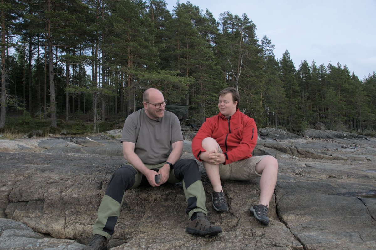 Wir wollen heute noch ein Stückchen näher ran ans Camp in Höglund. Eigentlich wollen wir nochmal zu unserem ersten Lagerplatz. Nach dem Frühstück packen wir wie gewohnt zusammen und ziehen los. Aber heute sind sehr viele Kanus unterwegs – scheinbar haben alle die Idee, am letzten Tag schon in Zielnähe zu campen. Unser Lagerplatz ist leider belegt aber gegenüber finden wir noch eine tolle Stelle, die kein offizielles Dano ist aber von vorherigen Nutzern gut präpariert wurde. Wir spannen wieder die Plane als Regenschutz. Es ist kühler als an den vergangen Tagen und der Wind tut sein übriges. Sebastian ist schon damit beschäftigt, einen Teil der Ausrüstung zu säubern. Später bekommen wir noch Besuch. Arne vom Scandtrack-Team kommt für ein kleines Interview zu Besuch. Eine schöne Abwechslung, einige aha-Effekte und einfach eine nette Gesprächsatmosphäre lassen das ganze viel länger dauern als ursprünglich geplant. Unser Abendessen ist die Pilzpfanne mit Reis, das letzte noch verfügbare Essen unserer Tonne (von den Linsen abgesehen). Die Sonne lässt sich nicht mehr blicken und so gehen wir heute etwas früher ins Bett.