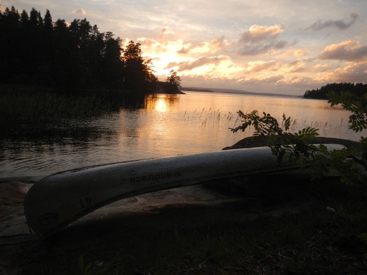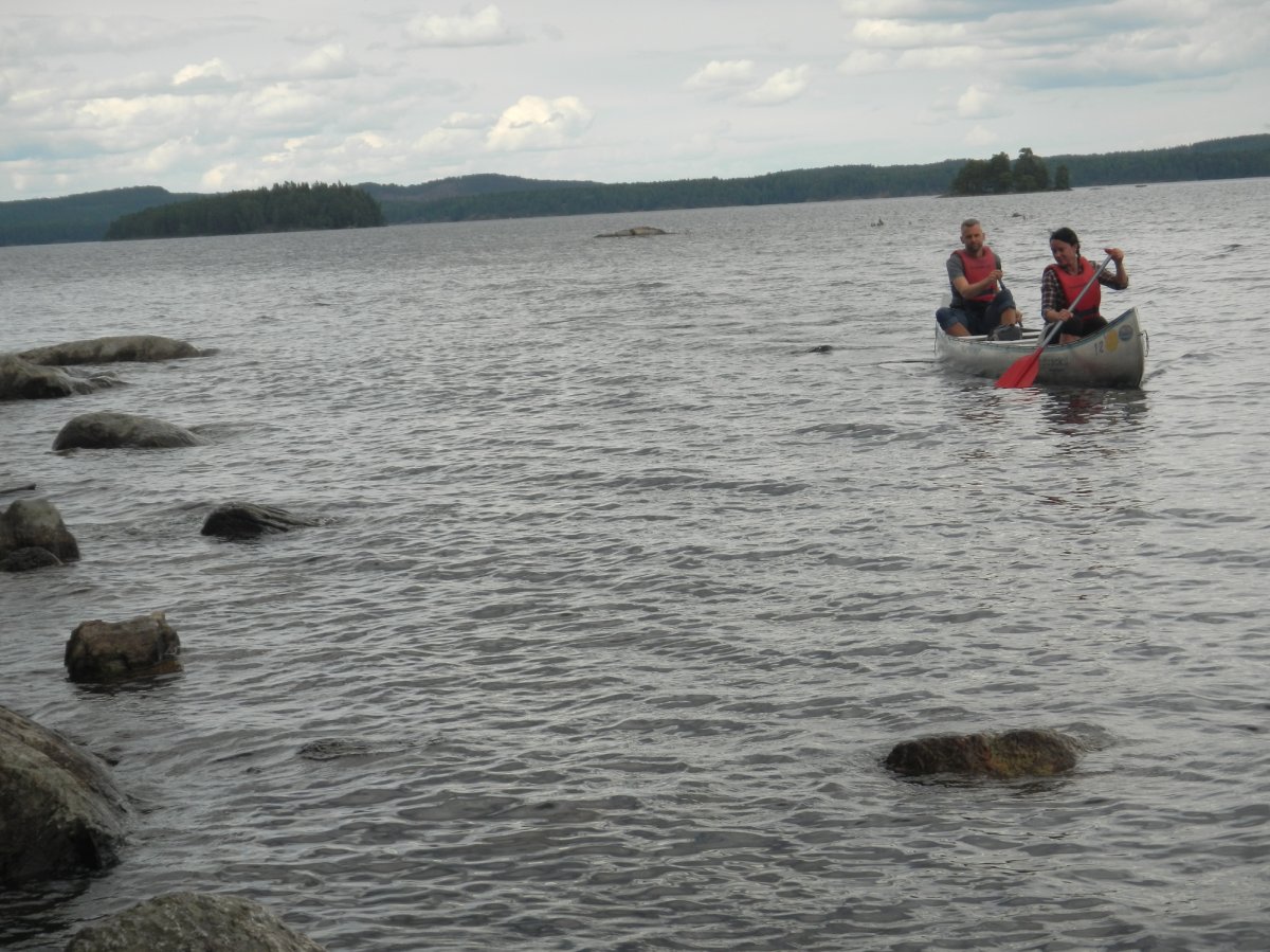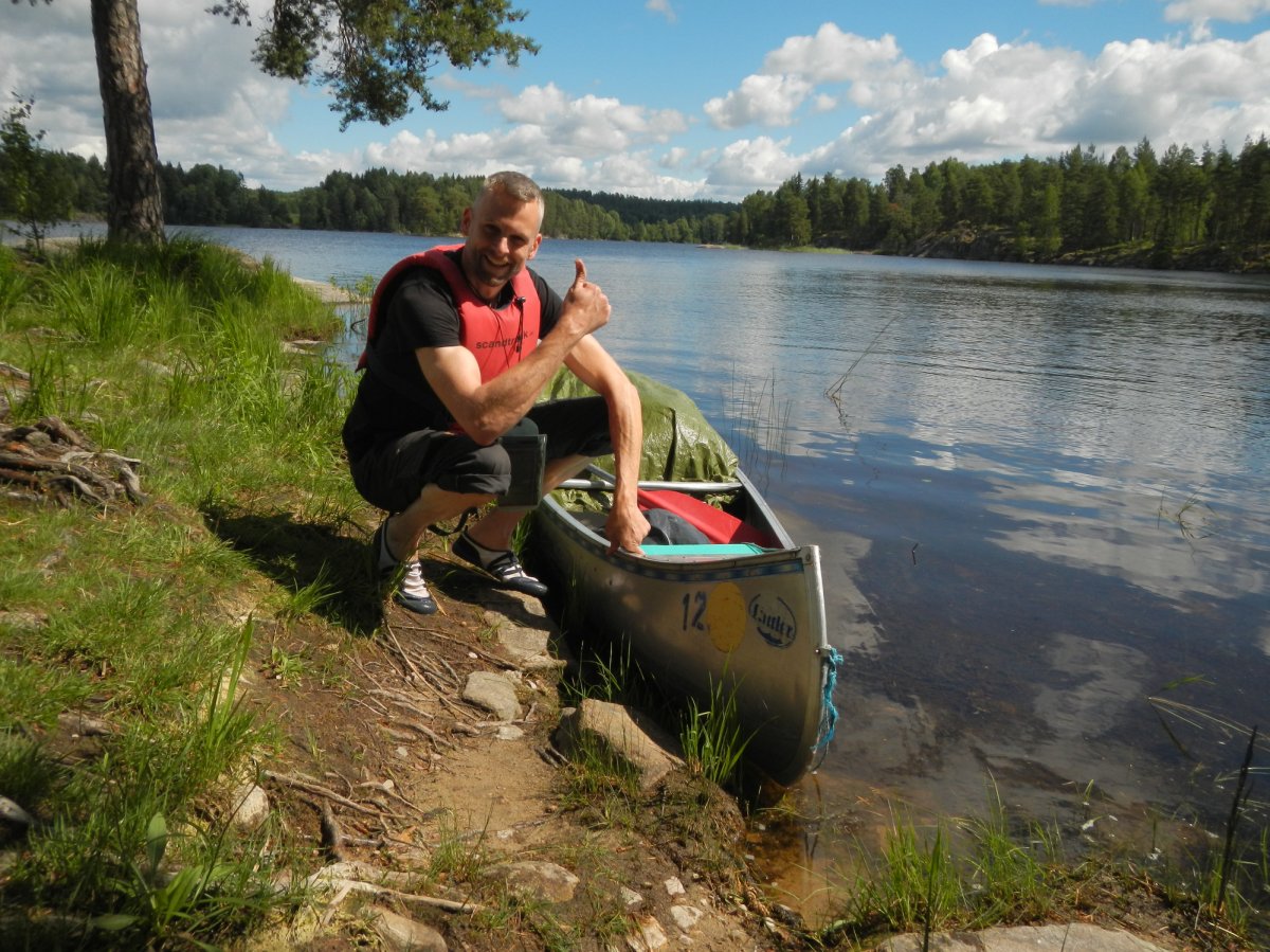 Die Nacht war leider ab 4 Uhr fast vorbei. Es regnete so stark, das es echt laut war im Zelt. Unsere Sachen sind aber alle immer trocken geblieben. Wir dösten immer mal wieder kurz ein... Morgens, pünktlich zum Aufstehen gegen 08 Uhr hörte es auf zu regnen. Wir konnten im "trockenen" frühstücken... Da wir nicht im Camp duschen wollten, gingen wir sogar alle nochmal im See baden... Wir ließen uns richtig Zeit.... Gegen 12:30 Uhr saßen wir im Kanu und steuerten das Scandtrack Camp an... Es war wieder guter Gegenwind angesagt... Im Camp angekommen, packten wir unsere Sachen um, gaben all die geliehenen Gegenstände ab und zogen uns nochmal um... Es war noch viel Zeit bis zur Abreise. Wir gingen zum Pub in Lennartsfors. Hier aßen wir noch eine Kleinigkeit und jeder einen leckeren Kuchen... Dieser Pub ist nur ca. 10-15 Minuten zu Fuß vom Camp entfernt. Abends gab es für die drei im Camp Köttbullar, ich bekam Kartoffeln und etwas Salat. Pünktlich um 20 Uhr mussten wir TSCHÜSS sagen :-(