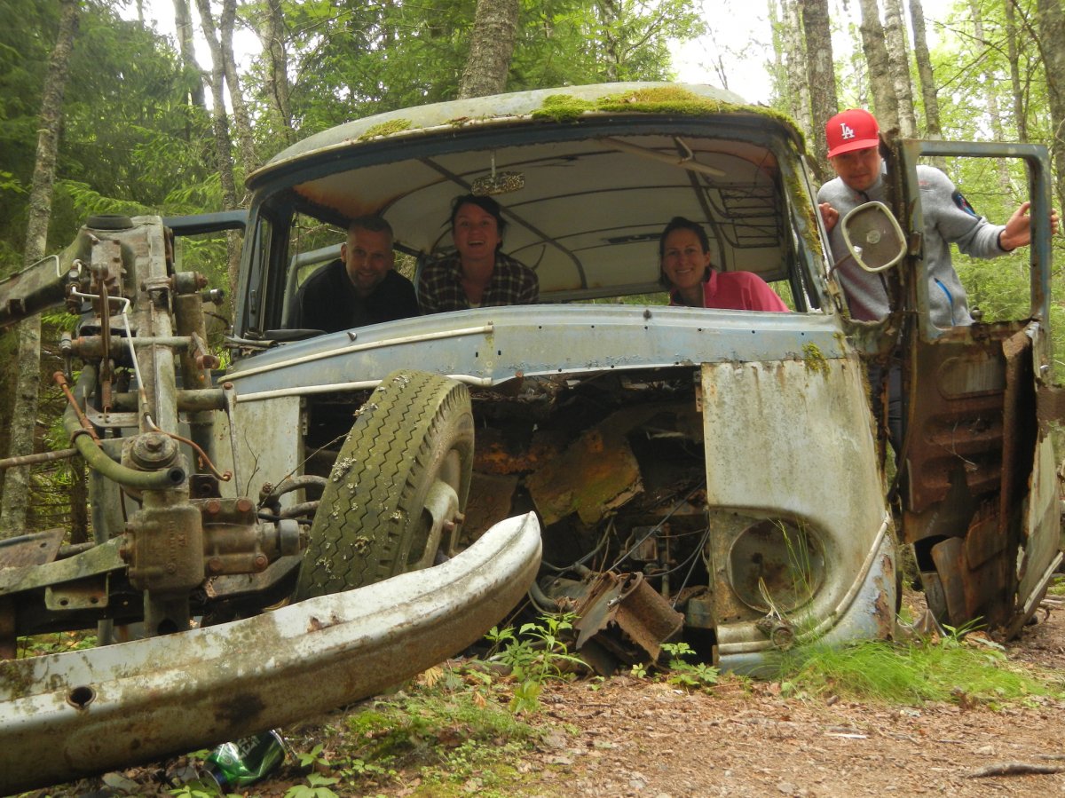Das total schöne Dano 17 war frei! Es lag wirklich total schön mit herrlichem Blick auf den Foxen bis zur Brücke bei Töcksfors. Wir luden alles aus, bauten die Zelte auf und relaxten erstmal wieder.... Die Sonne schien gerade und wir gingen erstmal baden. Zwischenzeitlich legten noch zwei Jungs ganz in der Nähe an, bauten ihr Zelt aber außer Sicht von uns auf. Da es noch sehr früh war, entschieden wir uns zum Autofriedhof rüber zu fahren. Andi und ich kannten diesen ja schon von den letzten beiden Reisen, aber ich finde ihn immer wieder interessant. Wir gingen dort in der Umgebung noch etwas durch den Wald spazieren. Ich pflückte eine Menge wilde Erdbeeren und Blaubeeren....