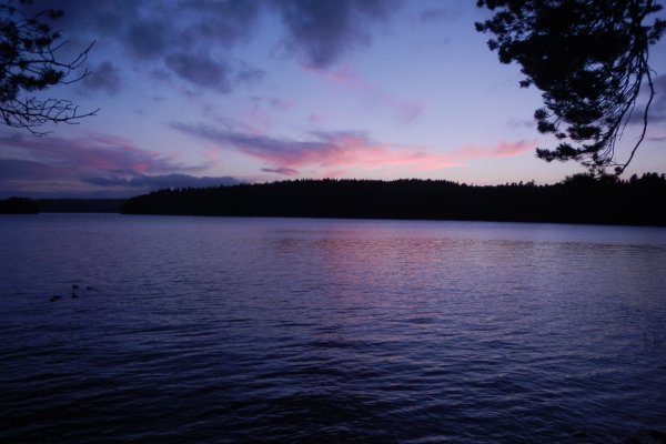 Wir packten alles aus, es hörte kurz auf zu regnen und wir bauten uns aus den Tarps einen Regenschutz... Nachdem die Zelte standen fing es wieder richtig stark an zu regnen. Es war ca. 16 Uhr.. Da es hier kein Dano gab (Dano 12 war belegt) gingen wir erstmal in unsere Zelte. Es regnete richtig stark. Ich schlief etwas ein. Gegen 18:30 Uhr wurde es wieder sonnig.... Wir hatten noch etwas trockenes Holz dabei und machten ein kleines Feuer. Da das Wetter nicht so toll war, nicht mehr genügend Holz da war, musste das Essen mittels Spirituskocher gekocht werden. Gut dass wir eh nur noch ein "einfaches Essen" über hatten! Heute gab es für Andi und die anderen Beiden den Linseneintopf. Ich hatte mir einen vegetarischen Erbseneintopf eingepackt. Da es uns etwas kalt war, kochten wir uns danach noch eine Gemüsesuppe. Den letzten Abend saßen wir wieder gemütlich am See und plauderten einfach nur. Es war, trotz des nicht ganz so tollen Wetters, ein toller erholsamer Urlaub.