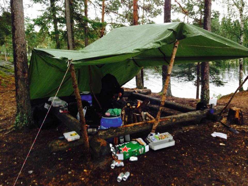 Ein Tag sah normalerweise so aus, dass man in der Früh von der Sonne geweckt wurde, nochmals mit dem am Tag zuvor gesammelten Feuerholz ein kleines Feuer machte, sodass man sich einen Kaffee oder Tee kochen konnte und ein kleines Frühstück zu sich nahm. Danach wurde zusammengepackt und das ganze Zeug ins Kanu geladen und losgepaddelt bis man eine kleine Mittagspause einlegte. Dann konnte man sich entscheiden, ob man nochmal weiterpaddelte oder gleich sein Lager aufschlug. Dies bestand darin, dass man sein Zelt aufbaute, Feuerholz sammelte und eventuell sein Lager gegen Wind und Regen schützte mit der Plane. Oft waren an den Lagerplätzen schon Baumstämme bereitgestellt, die man dann mit der von scandtrack bereitgestellten Säge und Axt zu Feuerholz machen musste. Dies erforderte eigentlich viel Zeit, da man viel Holz brauchte, da das Feuer ja schon einige Zeit brennen sollte. Nachdem dies erledigt war, konnte man die Gegend erkunden, Fischen, sich etwas zum Abendessen kochen, Baden, oder einfach nur den wunderschönen Sonnenuntergang betrachten. Und zum Abschluss des Tages kann man noch ganz gemütlich am Lagerfeuer zusammensitzen. Das war Erholung genug. :D