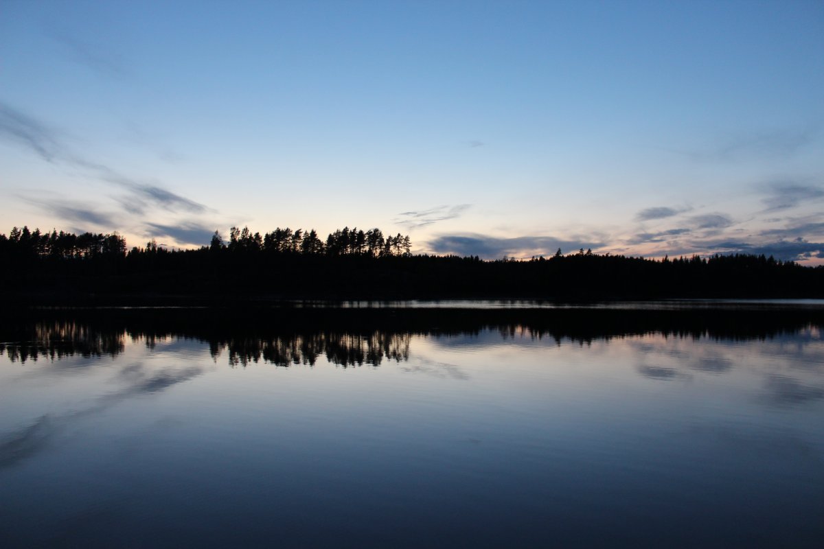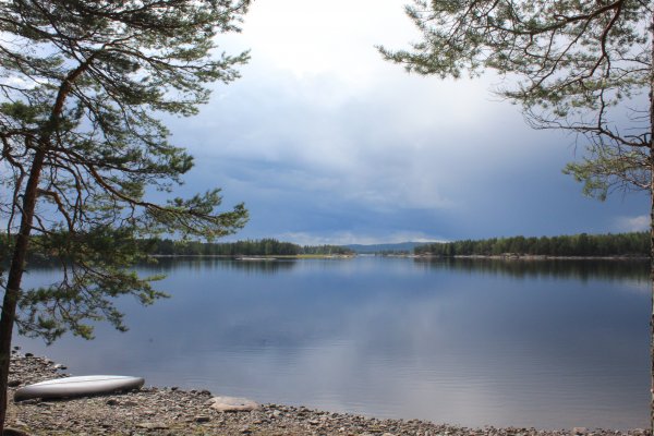 Nachdem wir den See überquert hatten, stand das zweite Umsetzen an. Zwar war die Strecke kürzer, diesmal aber holpriger. Dafür waren wir im Umgang mit unserem Kanu schon deutlich sicherer geworden. Wir fanden es spannend die Unterschiede der Seen zu sehen. Von großen Weiten und tiefem Wasser, über schmale und bewachsene Wege, war alles dabei. Egal wie, es war immer Entspannung angesagt. Fasziniert von den Spiegelungen im glatten Wasser, merkten wir gar nicht, wie weit wir letztendlich gepaddelt sind. Wir haben sogar unser angepeiltes Tagesziel verpasst. “Hoppla, drei Kilometer zu weit gefahren!” Aber sonst hätten wir nicht diese tolle Insel entdeckt. Eine kleine Insel, wie für uns gemacht. Bei toller Aussicht konnten wir unser handwerkliches Geschick unter Beweis stellen. Das Resultat war unser bisher bestes Camp.