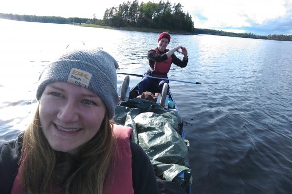 Mit einem ausgiebigen Frühstück zu viert am Wasser, sind wir gut in den Tag gestartet. Dabei genossen wir die Sonne, die schon kurz darauf hinter einer dicken Wolkendecke verschwand. Alles zusammengepackt, machten wir uns wieder auf den Weg. Schon nach kurzer Zeit wurde der Wind so stark, dass wir nicht voran kamen und eine Zwangspause einlegen mussten. Aber auch so eine Zwangspause kann man mit leckerem Krümeltee und intensiven Gesprächen genießen. Nachdem der Regen abnahm, starteten wir einen zweiten Versuch. Dieses Mal wurde nicht nur gepaddelt, sondern auch lautstark gesungen.Obwohl wir eine weitere Zwangspause einlegen mussten, ließen wir uns die Laune zu keiner Zeit verderben. Es war eine große Erleichterung, als wir am Nachmittag endlich die Stelle zum Umsetzen erreichten. Dann hieß es girlpower! Nach dem ersten Ausräumen beschlossen wir uns für die nächsten Male eine neue Taktik zu überlegen.