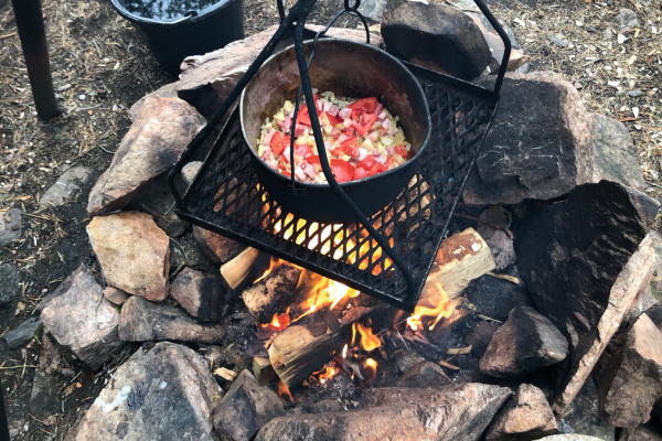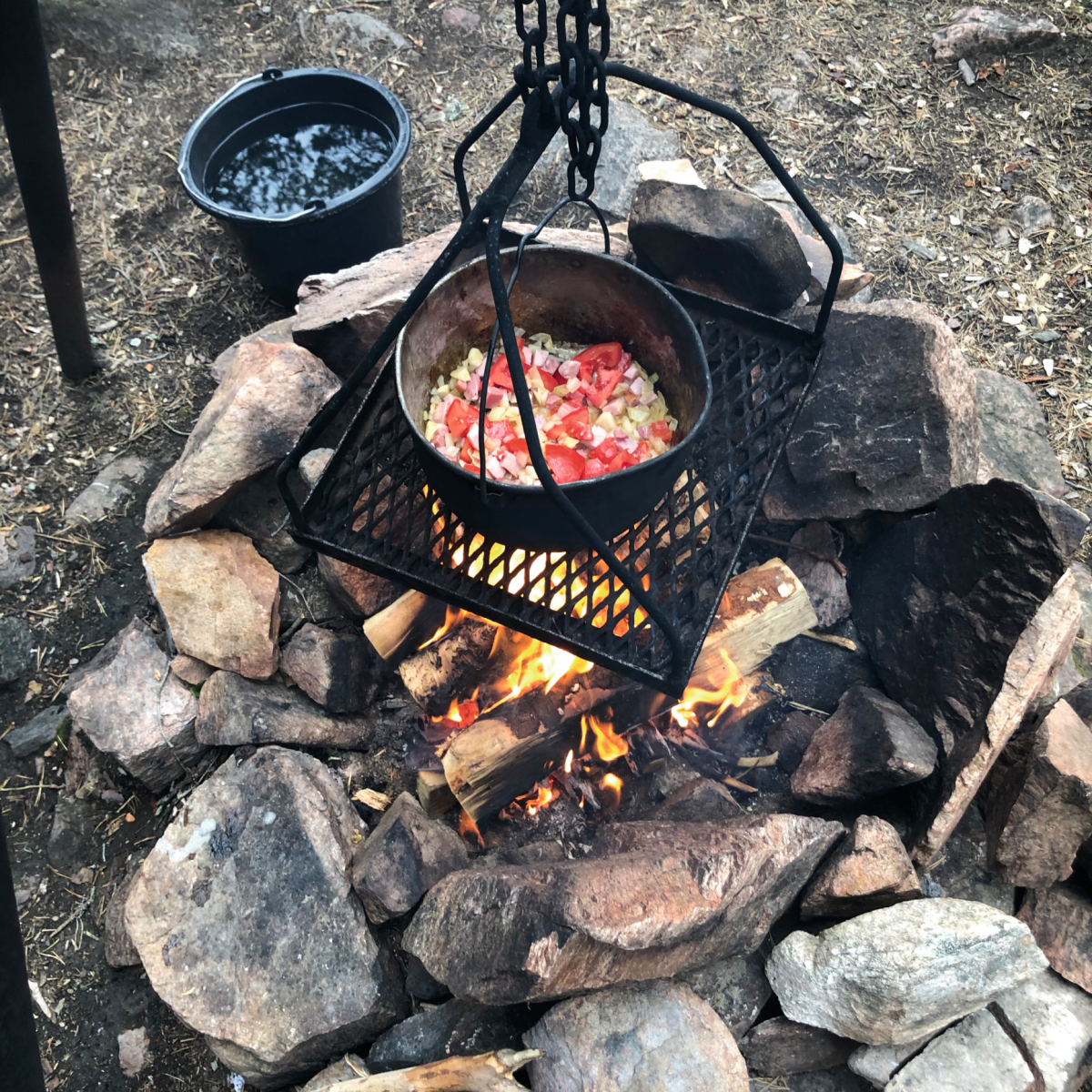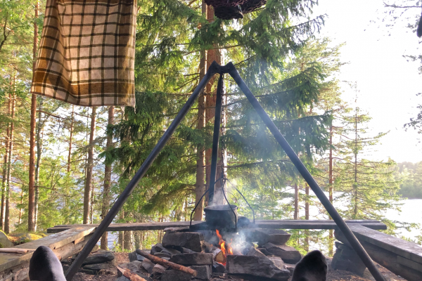 ++Tipp++ Im Basislager von Lenungshammar kann man von den Scandtrack-Mitarbeitern sowohl einen Hordentopf als auch eine gusseiserne Bratpfanne (sehr zu empfehlen, wenn man vor hat zu angeln!) für je 10 € Leihgebühr bekommen. Das Rost, das wir im Ausrüstungspaket erhalten hatten, haben wir hingegen während der gesamten Tour nicht gebraucht, da jede Feuerstelle mit einem Rost ausgestattet war. Aber es ist sicher gut brauchbar, wenn man Angler ist.