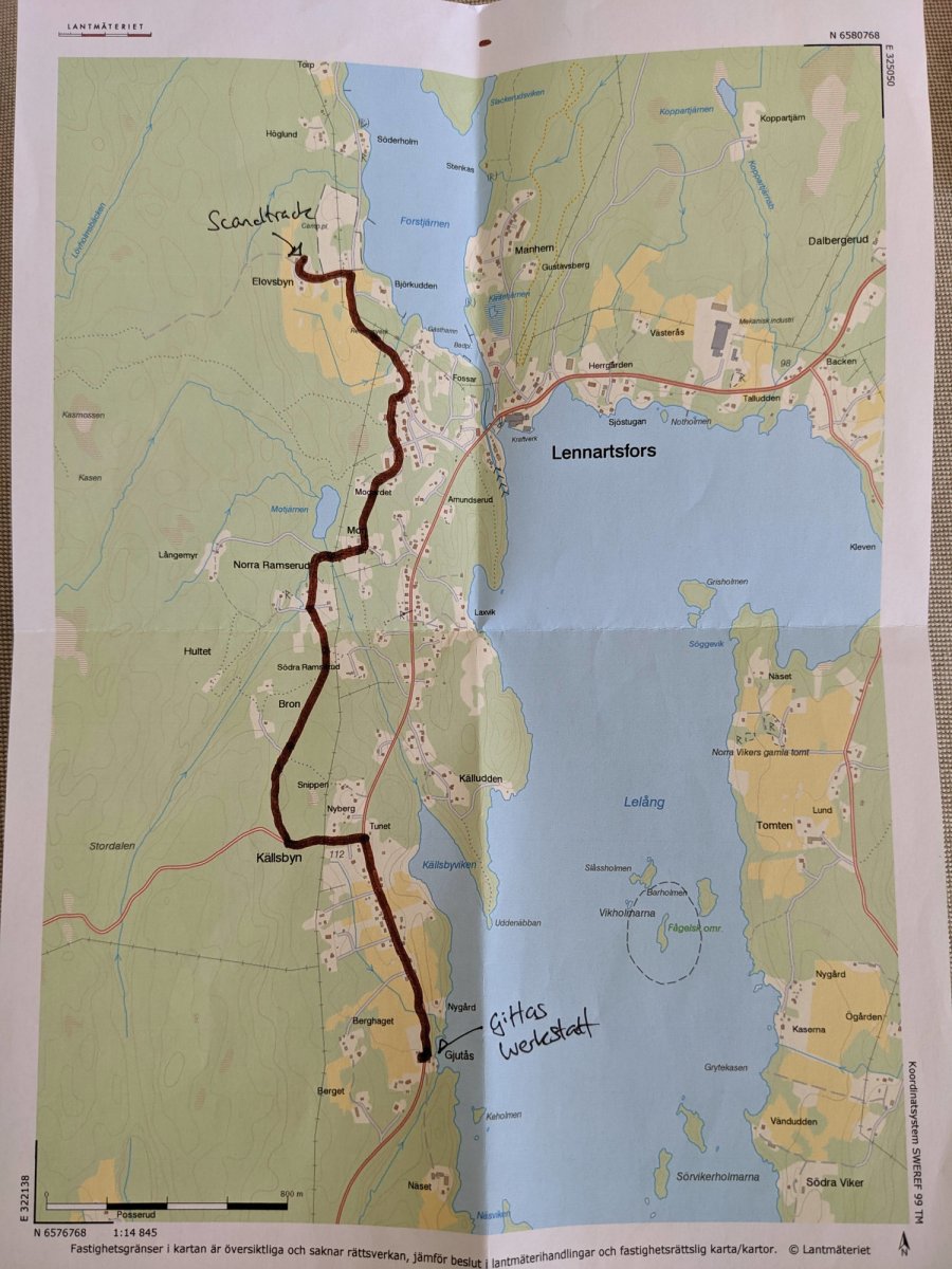 Den Vormittag verbrachten wir damit, das Kanu zu reinigen und die Ausrüstung zurückzugeben. Gegen 13:00 wurden wir und die anderen Scandtrack-Kanuten mit dem Bus abgeholt und zurück nach Höglund gebracht. Wir nutzen den freien Nachmittag für einen Besuch von Gittas Werkstatt in Höglund. Gitta und ihr Mann sind deutsche Rentner, die in Höglund einen kleinen Hof mit Werkstatt haben. Gitta ist Weberin und betreibt auch einen kleinen Laden mit hochwertigem Kunsthandwerk. Sie hat uns ihre Werkstatt gezeigt und uns viel über die Kunst des Webens und des Färbens mit Naturfarben erzählt, während ihr Mann Kaffee und Zimtschnecken für uns alle vorbereitete. Am Abend ging dann auch schon der Scandtrack Express. Angenehm erschöpft, von der Sonne geküsst und rundum zufrieden, fuhren wir zurück nach Berlin.