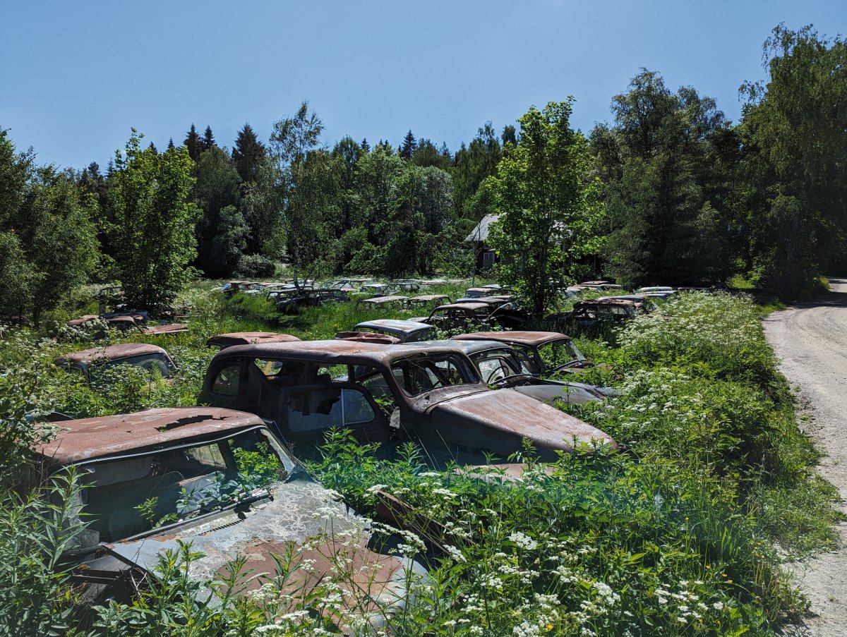 Nach dem gemeinsamen Frühstück mit Birdy, einer Kröte im Vorzelt und dem Eichhörnchen von letzter Nacht hieß es Abbauen, weiter erkunden und diesmal auch mit einem konkreten und ganz besonderen Ziel: auf Richtung Autofriedhof. Wir haben uns einen schönen Platz in der Nähe ausgekundschaftet und uns nach dem Aufbau des Lagers und einer kleinen Stärkung zum Autofriedhof begeben. Der Besuch ist zu empfehlen und eine interessante Erfahrung. Auf der einen Seite ist es beeindruckend, ein Stück Historie des Automobils zum Anfassen zu haben. Gleichzeitig auf der anderen Seite aber auch surreal so viel Schrott und Abfall mitten in der Umwelt zu finden.