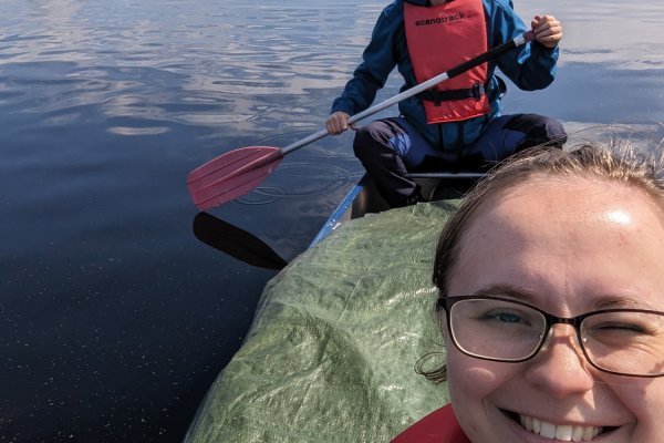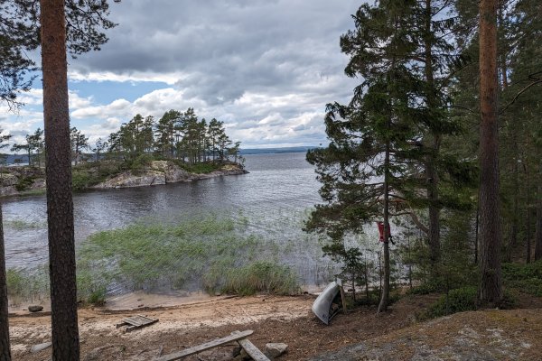 Erklärtes Ziel für diesen Tag: Frühmorgens die Windstille nutzen, runter von der Insel und in den schützenden Flussarm fahren. Da wir uns den Wecker früh genug gestellt hatten, klappte der Plan. Wir bauten das Camp ab und machten uns auf den Weg. Anscheinend waren wir aber selbst für die Tierwelt noch zu früh unterwegs. Beim Umrunden einer Insel weckten wir einen Biber auf einem Vorsprung auf, der vor Schreck fast in unser Boot gesprungen ist. Wer sich hierbei mehr erschreckt hat, der Biber oder wir, ist schwer zu sagen. Wir fanden kurz darauf eine schöne Insel und gingen diesmal etwas tiefer in den Wald, um den natürlichen Windschutz besser ausnutzen zu können. Am späten Nachmittag kam dann auch nochmal die Sonne raus, sodass wir die Solar-Powerbanks etwas nachladen konnten.